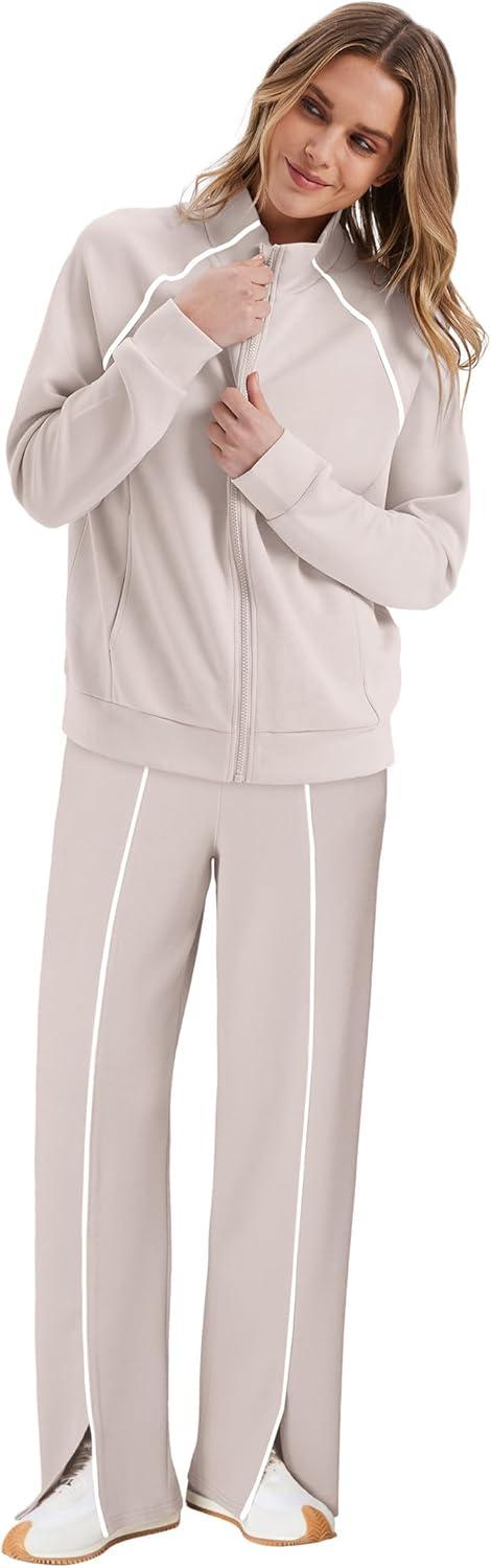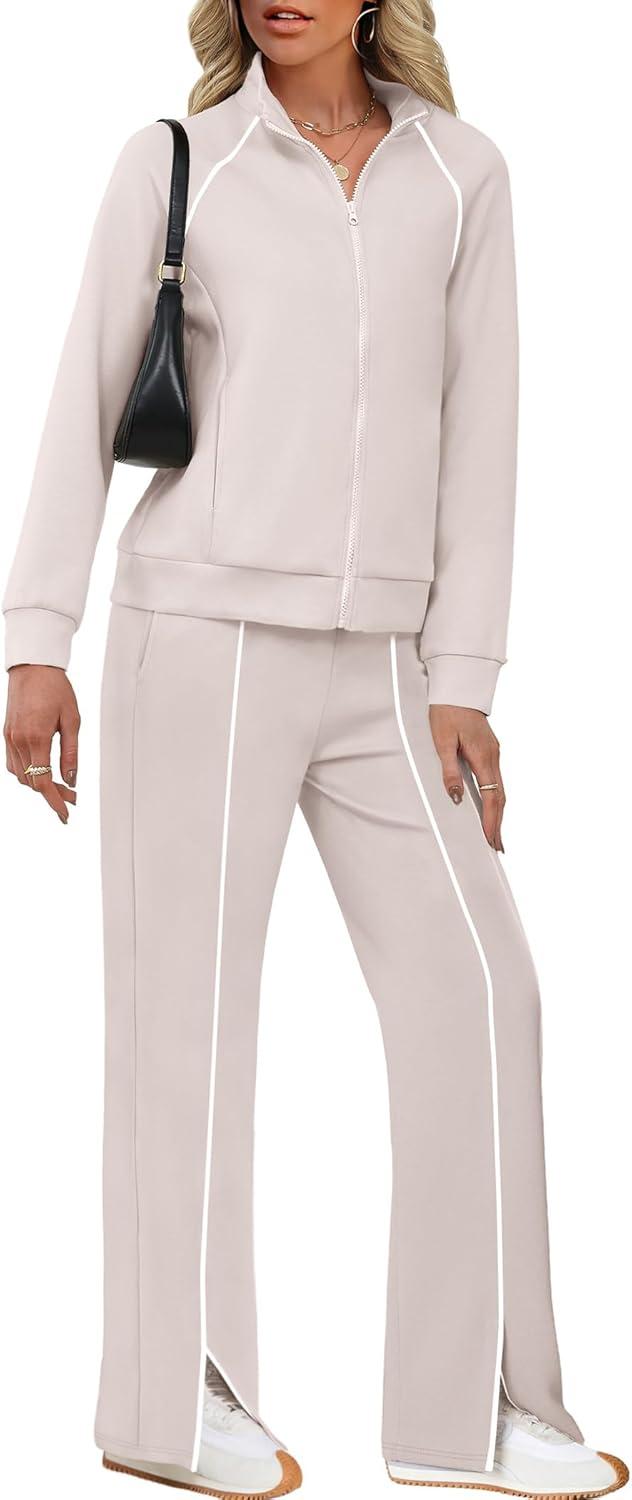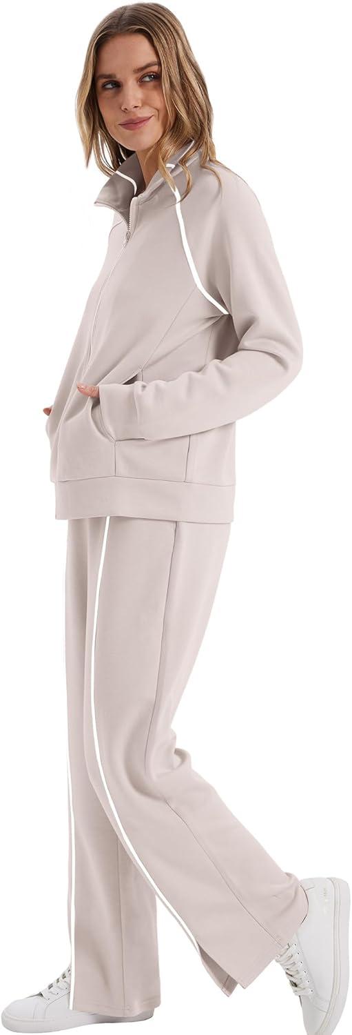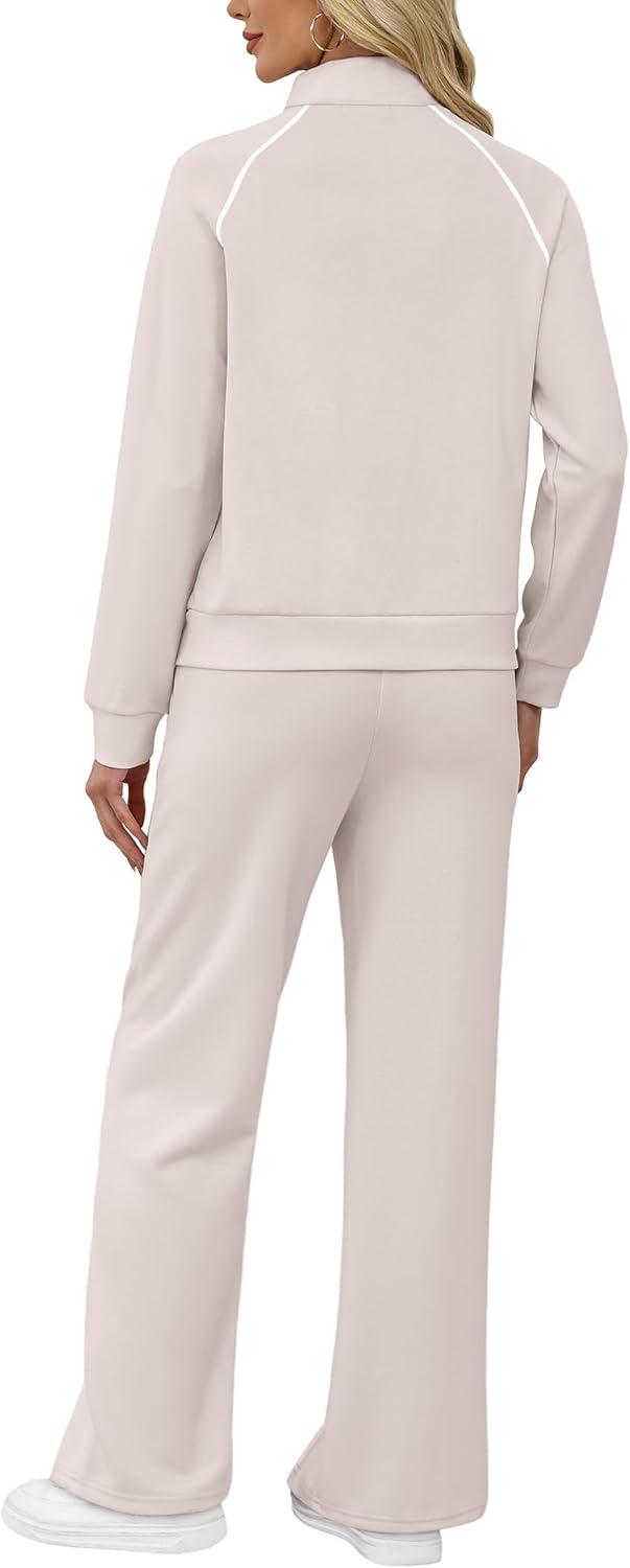 SAMPEEL 2 Piece Outfits for Women Lounge Sets Matching Sets Fall Fashion Clothing Travel Airport Vacation Clothes Pant Sets(Beige)