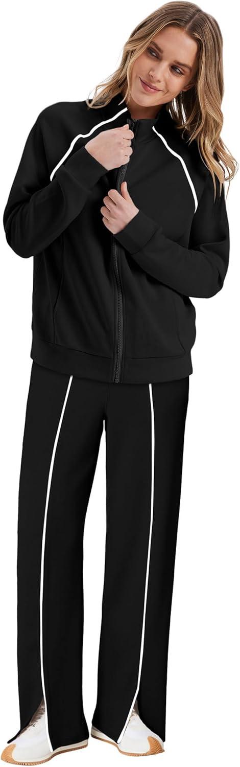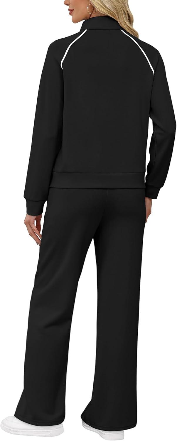 SAMPEEL 2 Piece Outfits for Women Lounge Sets Matching Sets Fall Fashion Clothing Travel Airport Vacation Clothes Pant Sets(Black)