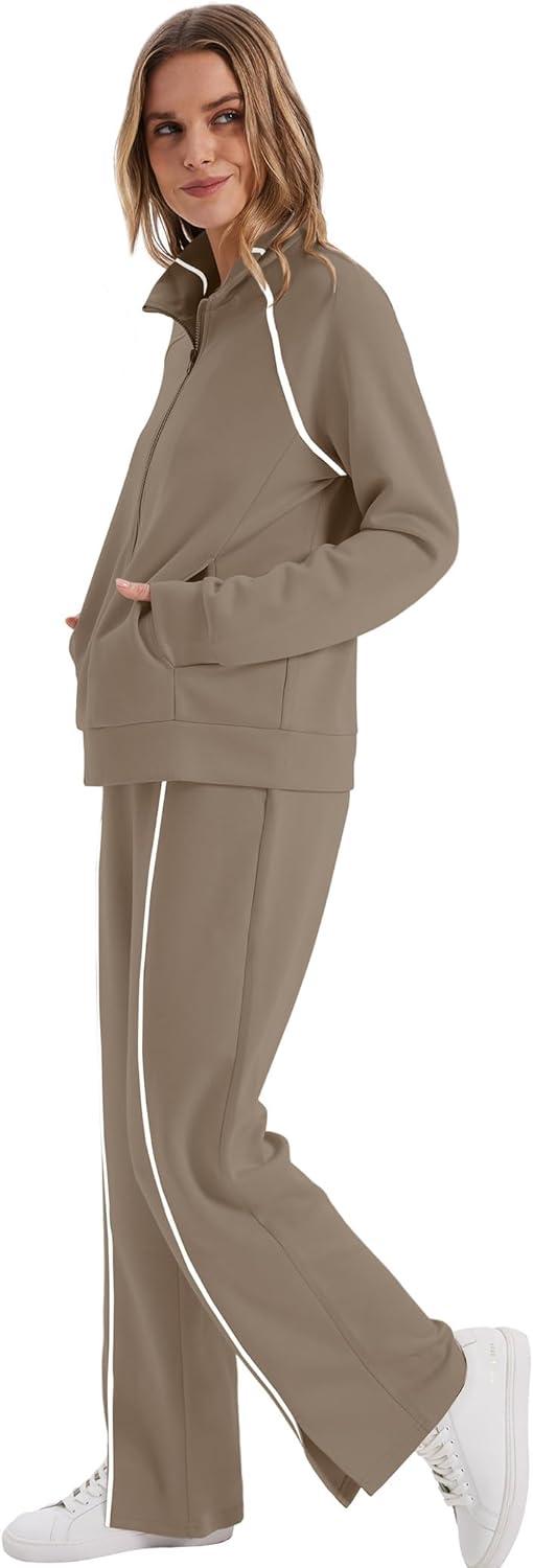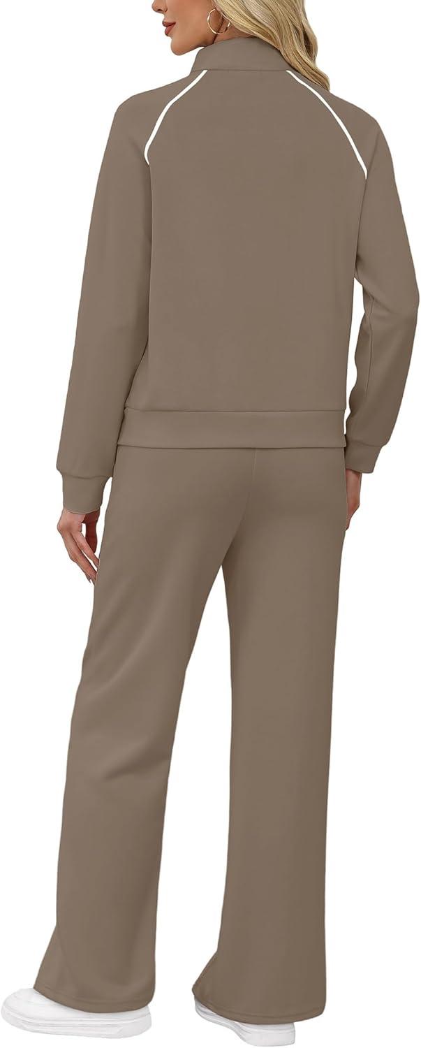 SAMPEEL 2 Piece Outfits for Women Lounge Sets Matching Sets Fall Fashion Clothing Travel Airport Vacation Clothes Pant Sets(Coffee)