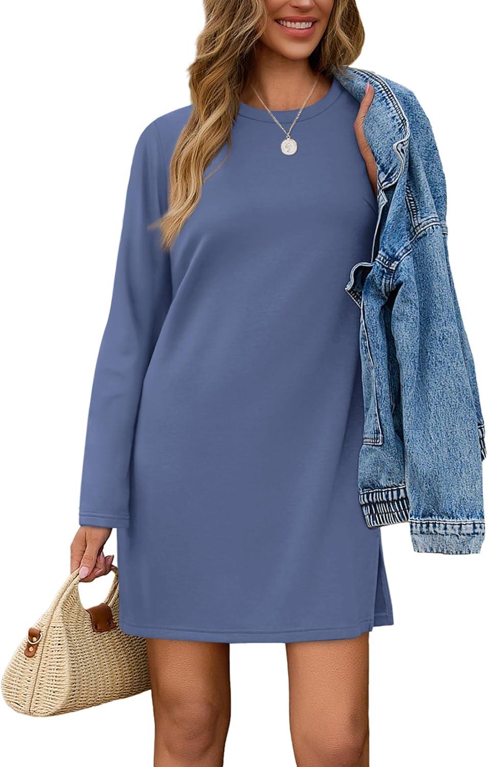 SAMPEEL Dresses for Women 2025 Casual Long Sleeve Cozy Tshirt Dress Fashion Fall Outfits(Blue)
