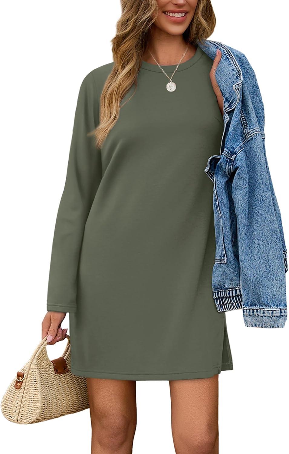 SAMPEEL Dresses for Women 2025 Casual Long Sleeve Cozy Tshirt Dress Fashion Fall Outfits(Green)