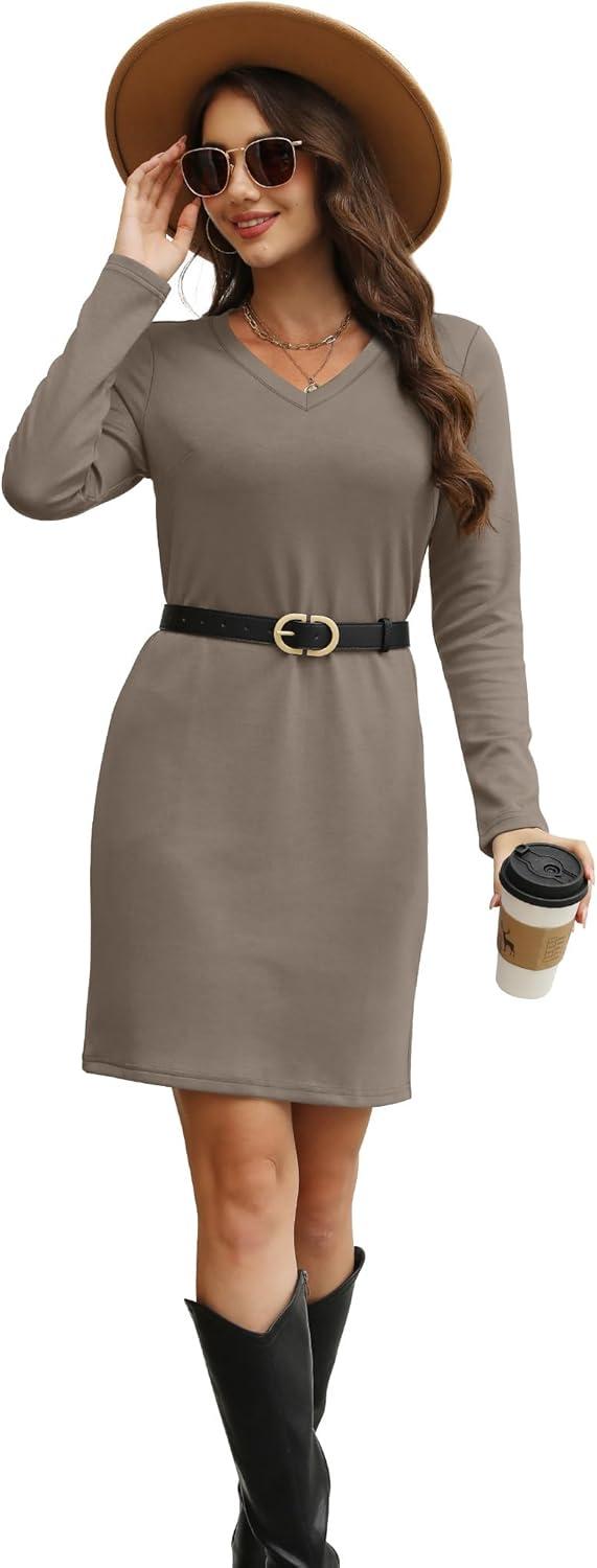 imageSampeel Dresses for Women 2025 Casual Long Sleeve V Neck Tshirt Dress Side Split Fashion Fall OutfitsCoffee