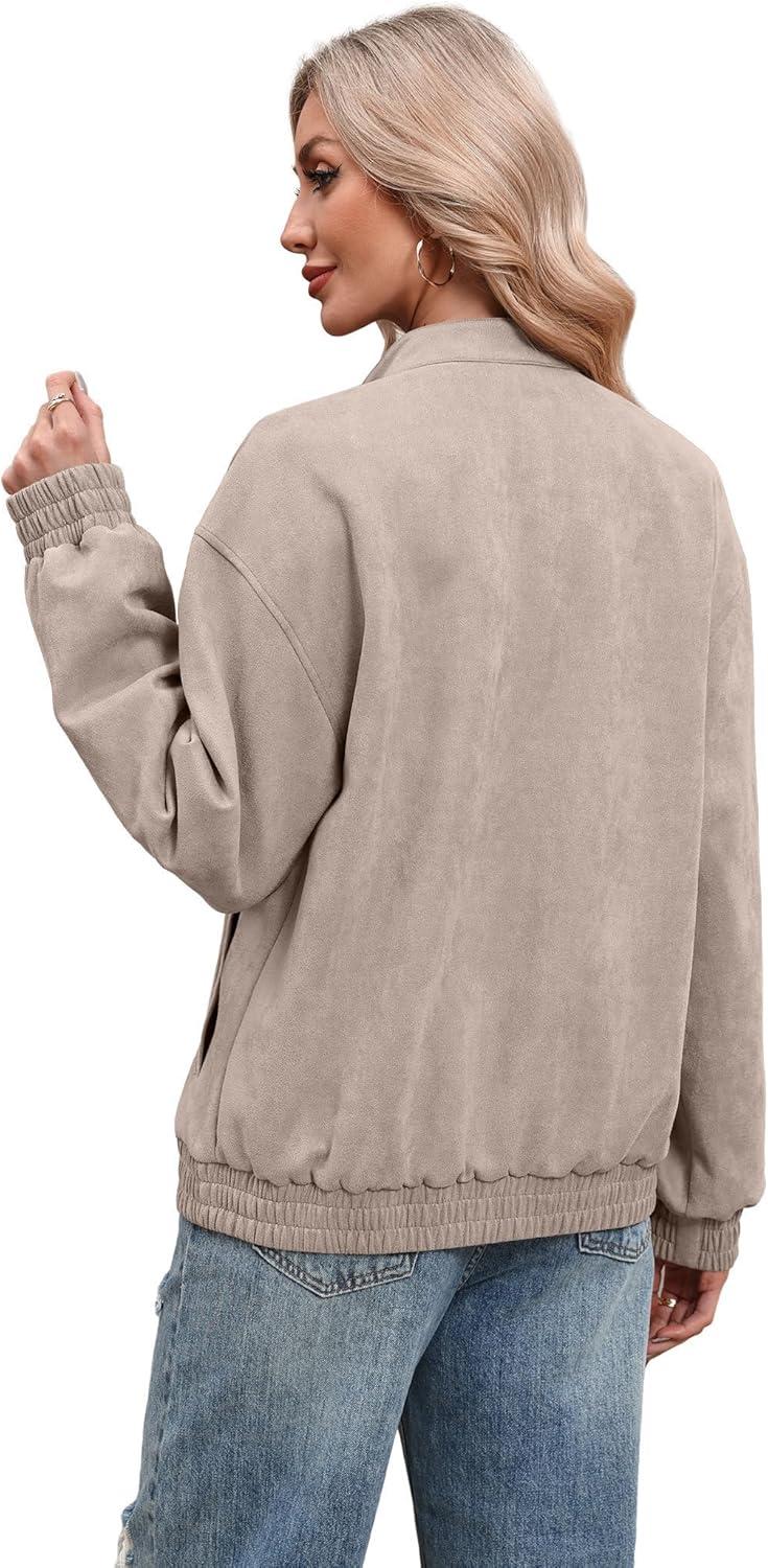 Sampeel Leather Jacket Women Faux Oversized Motorcycle Bomber Coats 2025 Fall Fashion Outfits Winter Clothes(Suede Apricot)