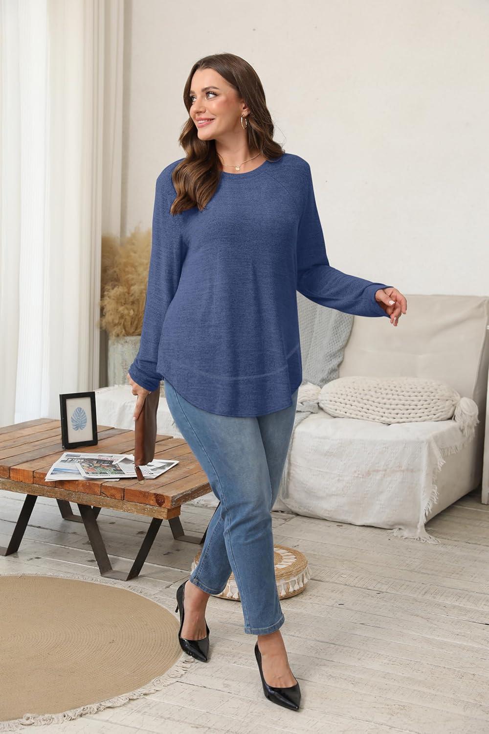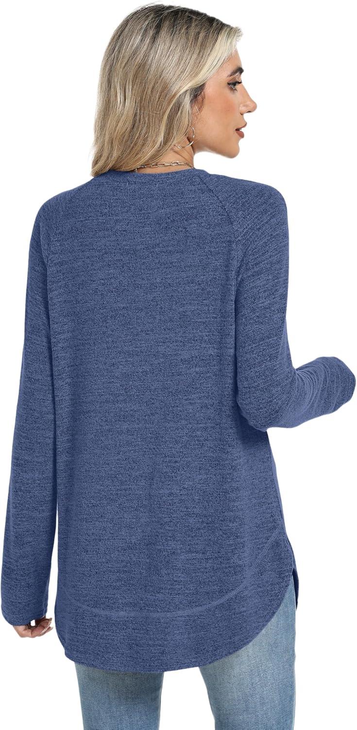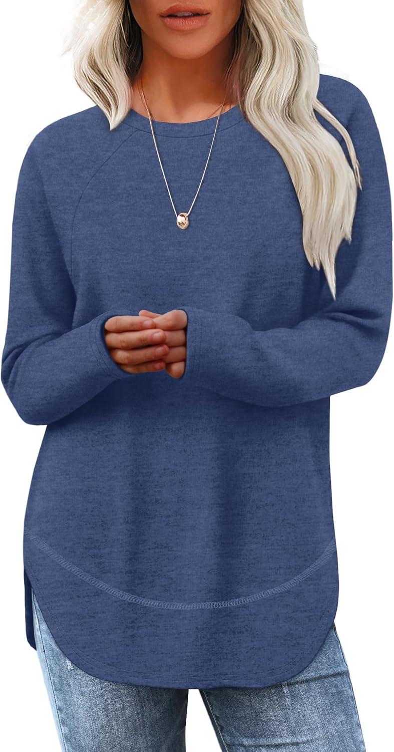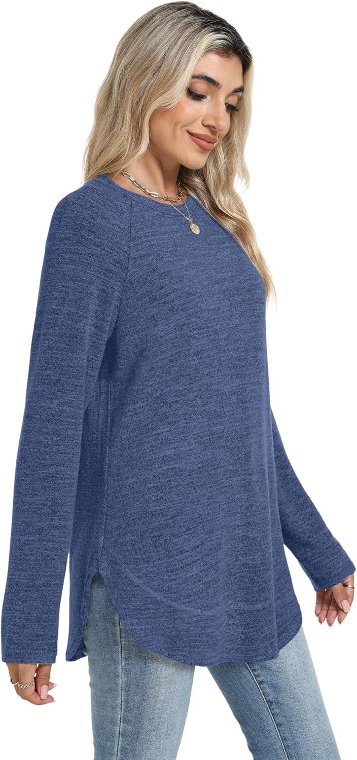 Sampeel Long Sleeve Shirts for Women Tunic Tops Loose Fit Dressy Crew Neck Pullover Basic Sweaters for Women 2025(Navy)