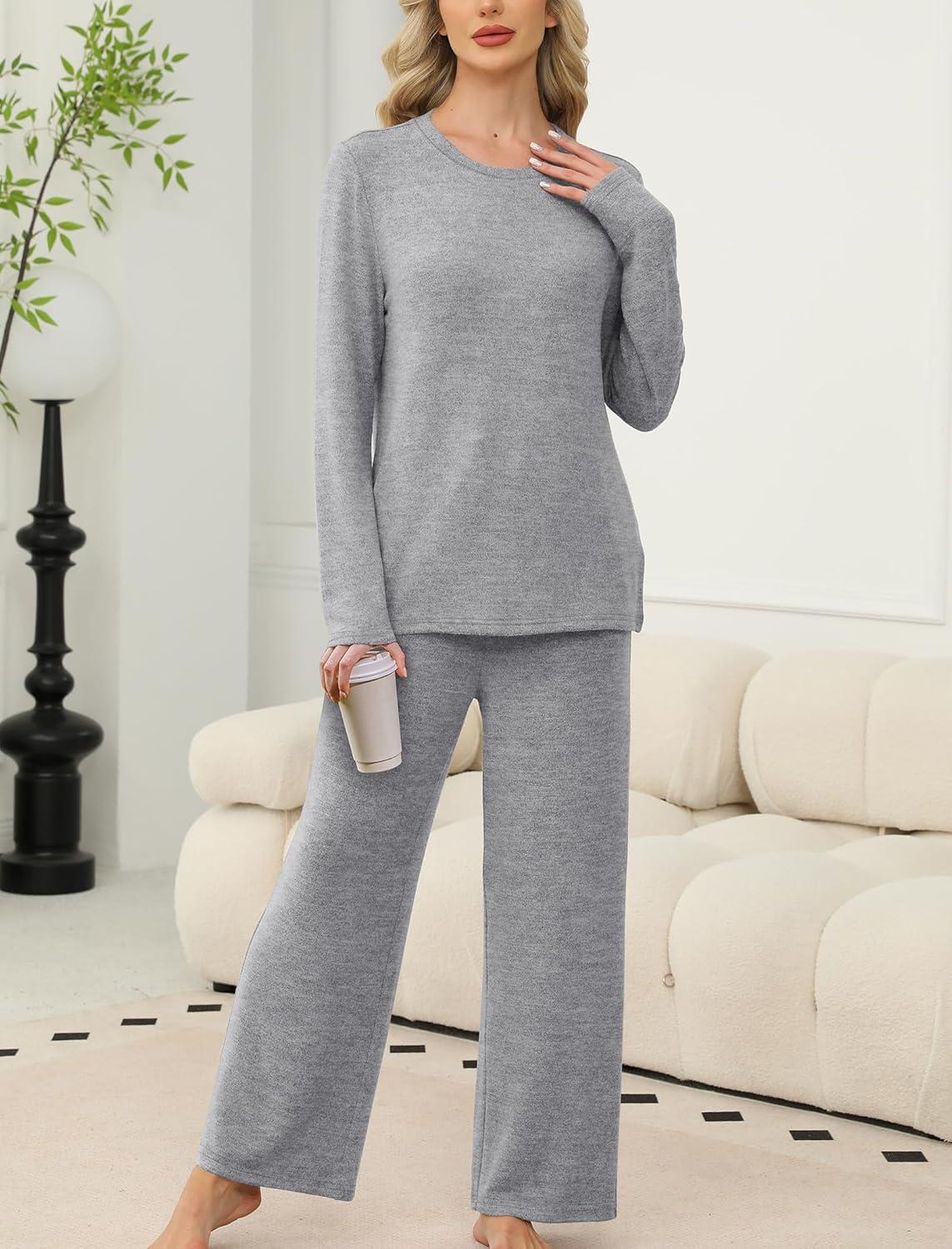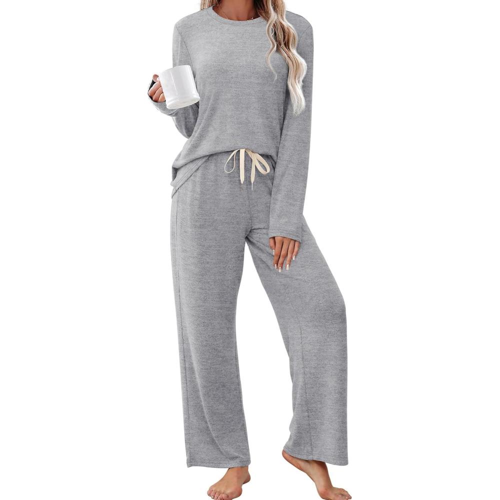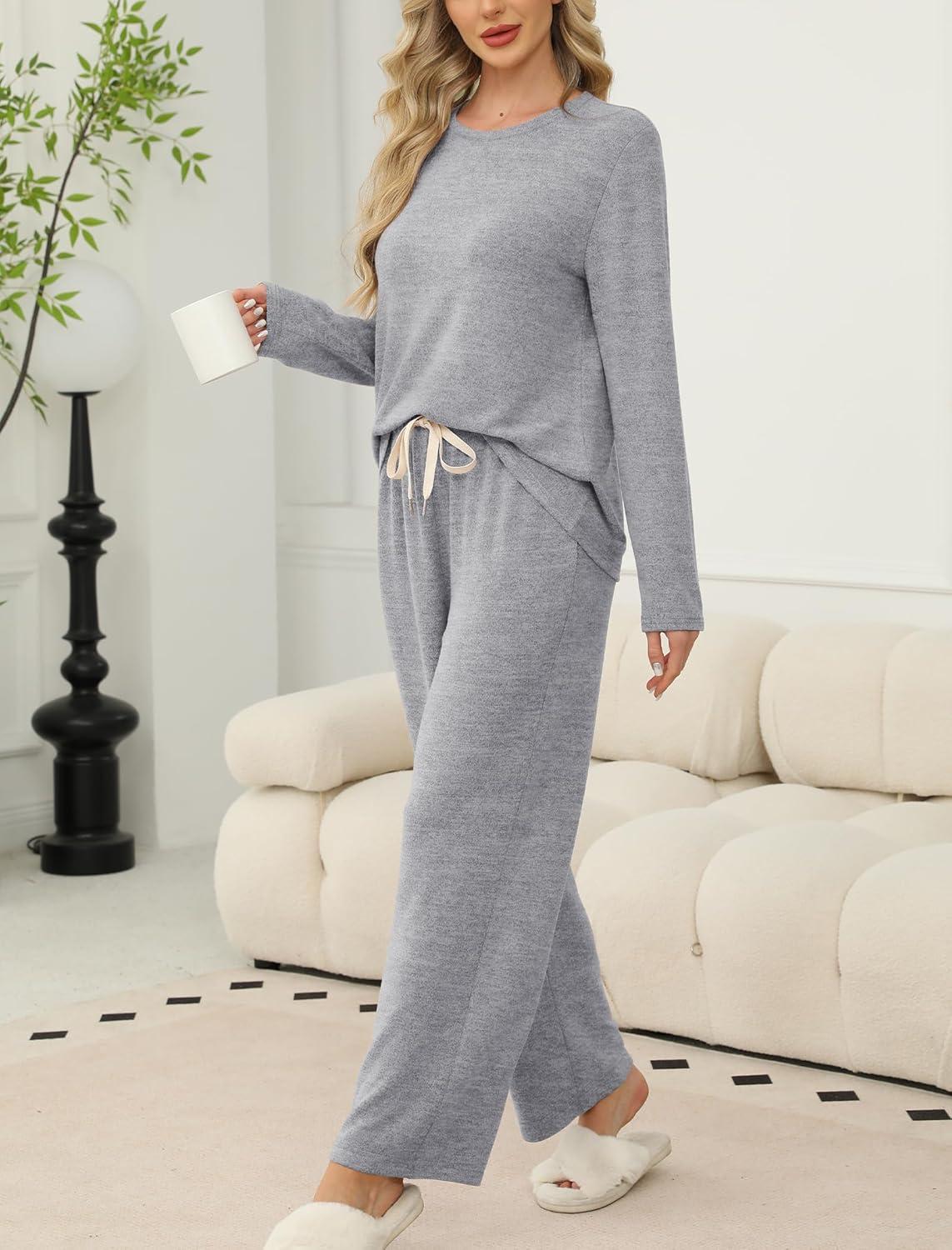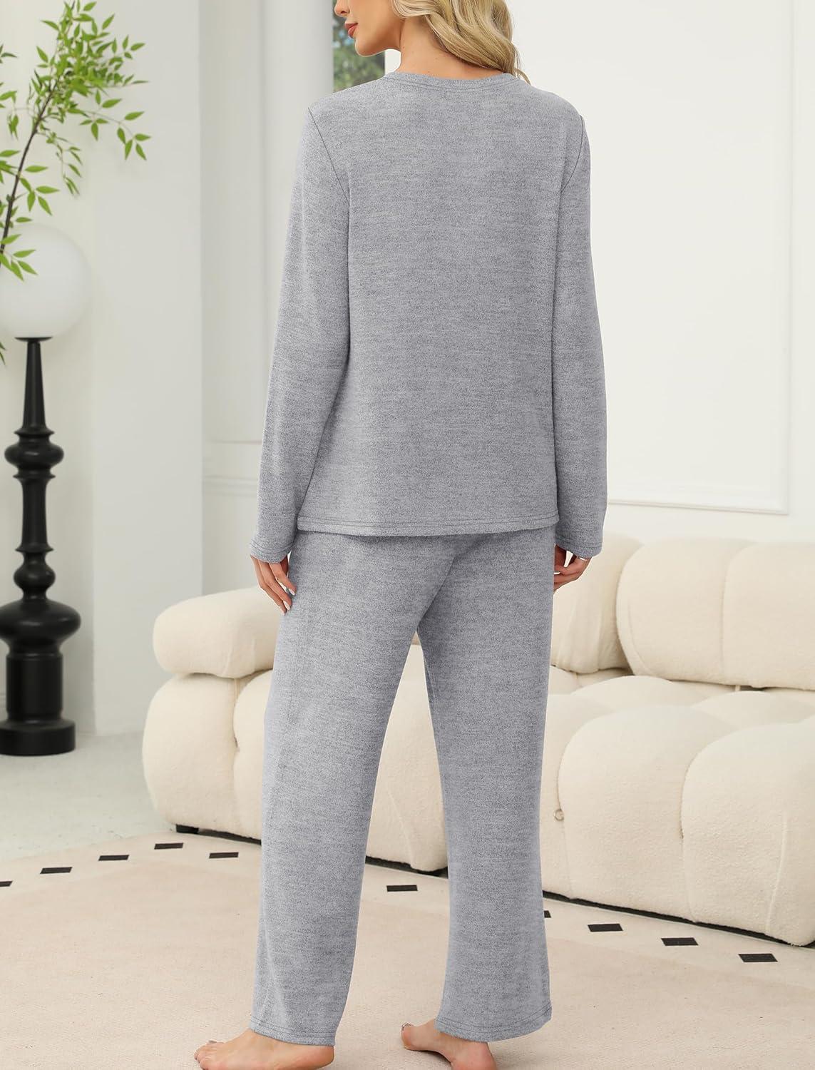 SAMPEEL Pajamas for Women Set Comfy Lounge Sets Two Piece Long Sleeve Cute Pjs Soft Sleepwear Winter Clothing(Classic Gray)