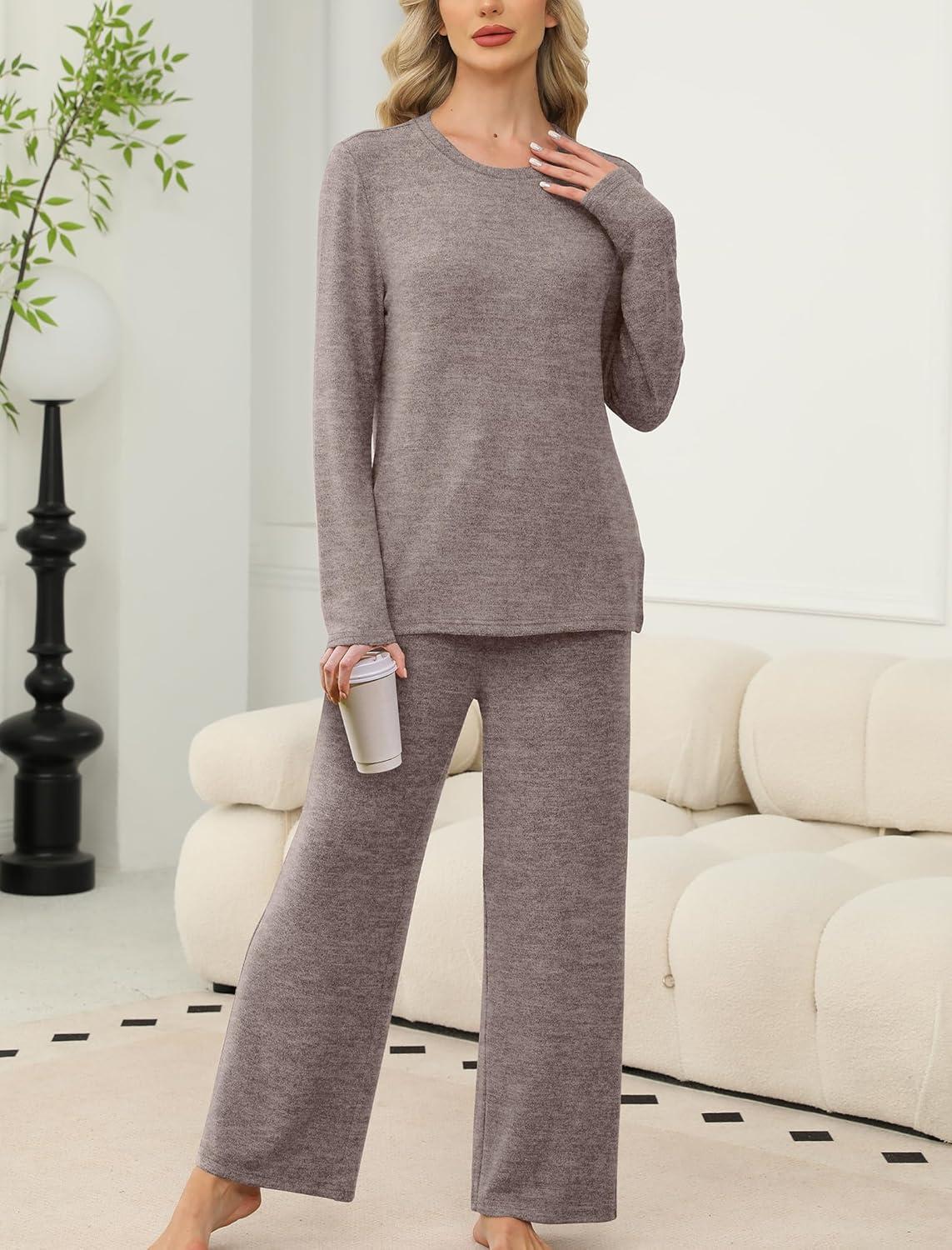 SAMPEEL Pajamas for Women Set Comfy Lounge Sets Two Piece Long Sleeve Cute Pjs Soft Sleepwear Winter Clothing(Khaki)