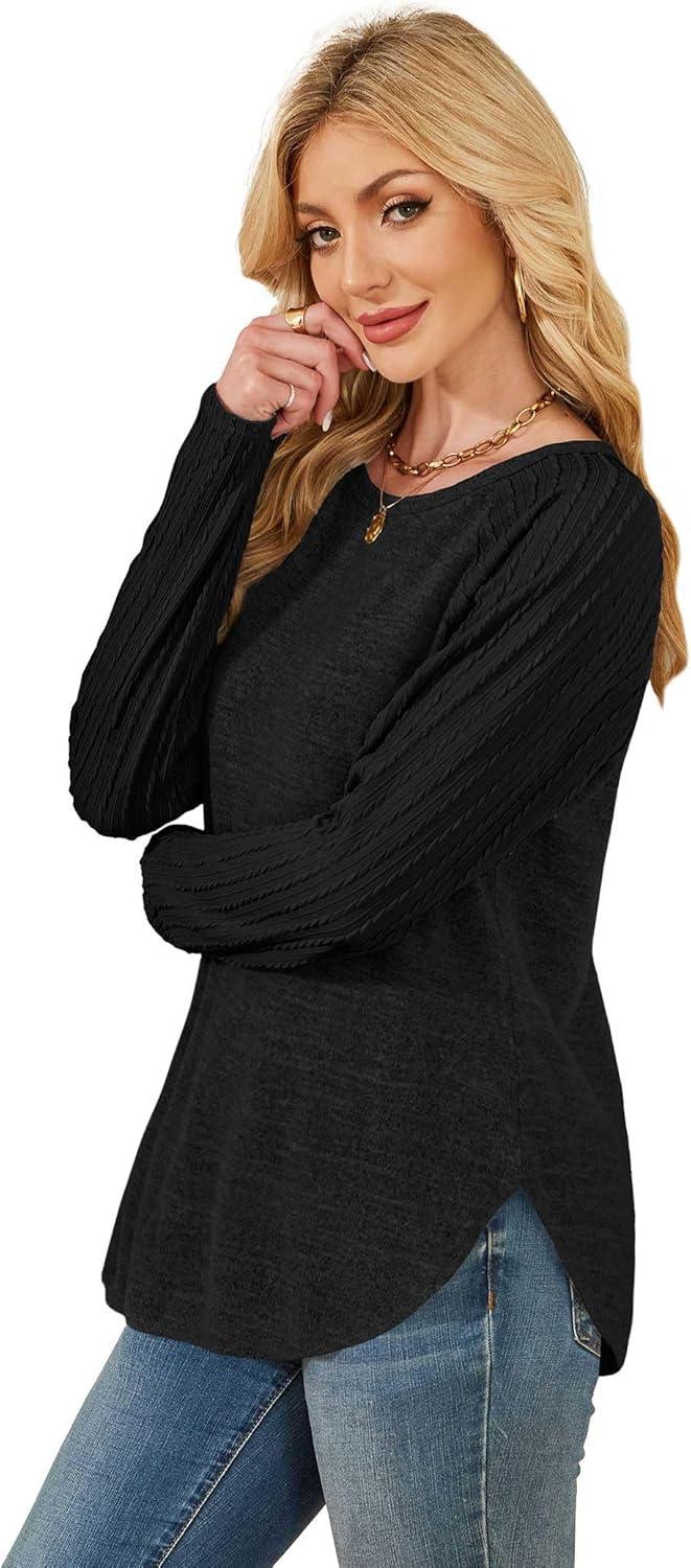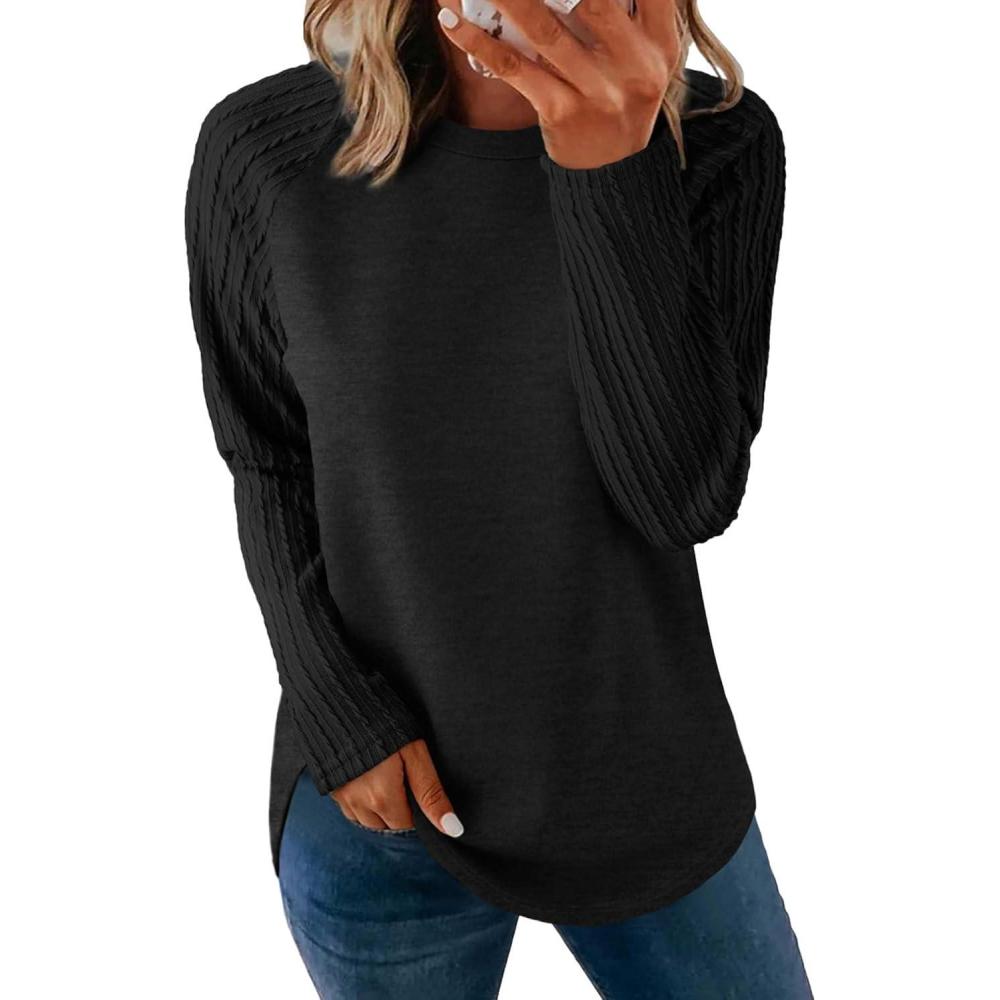 SAMPEEL Sweatshirt for Women Long Sleeve Shirts Crewneck Sweaters Fall Fashion Outfits 2025 Trendy Tunic Tops Plus Size(Black)