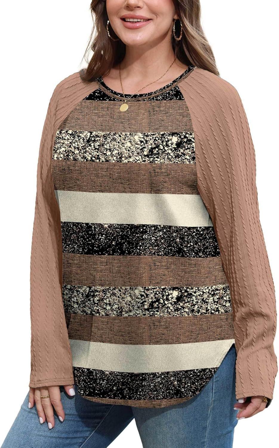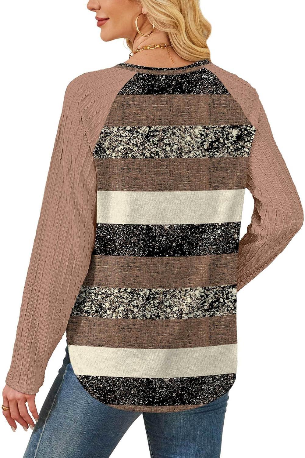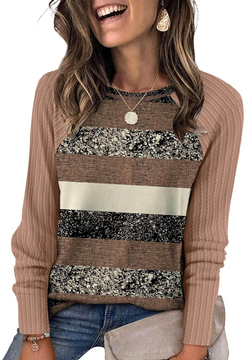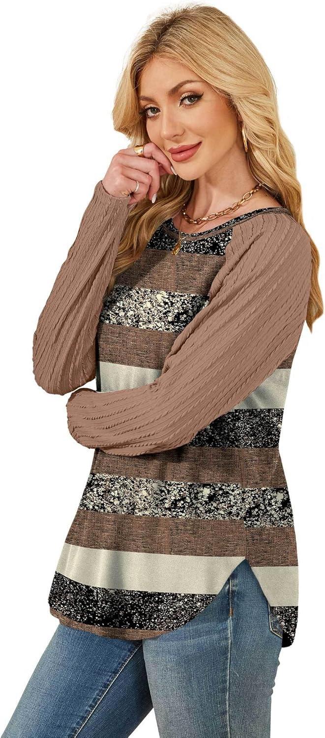 SAMPEEL Sweatshirt for Women Long Sleeve Shirts Crewneck Sweaters Fall Fashion Outfits 2025 Trendy Tunic Tops Plus Size(Striped-brown)