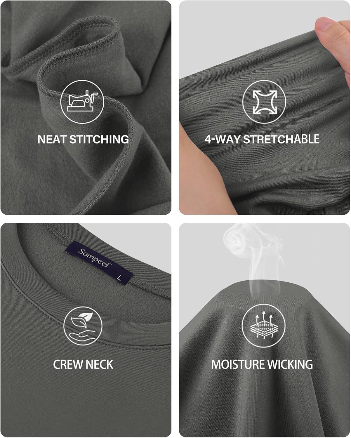 Sampeel Thermal Underwear for Women Long Johns with Fleece Lined Long Sleeve Shirt Legging Lounge Set Cold Weather Top Bottom(Grey)