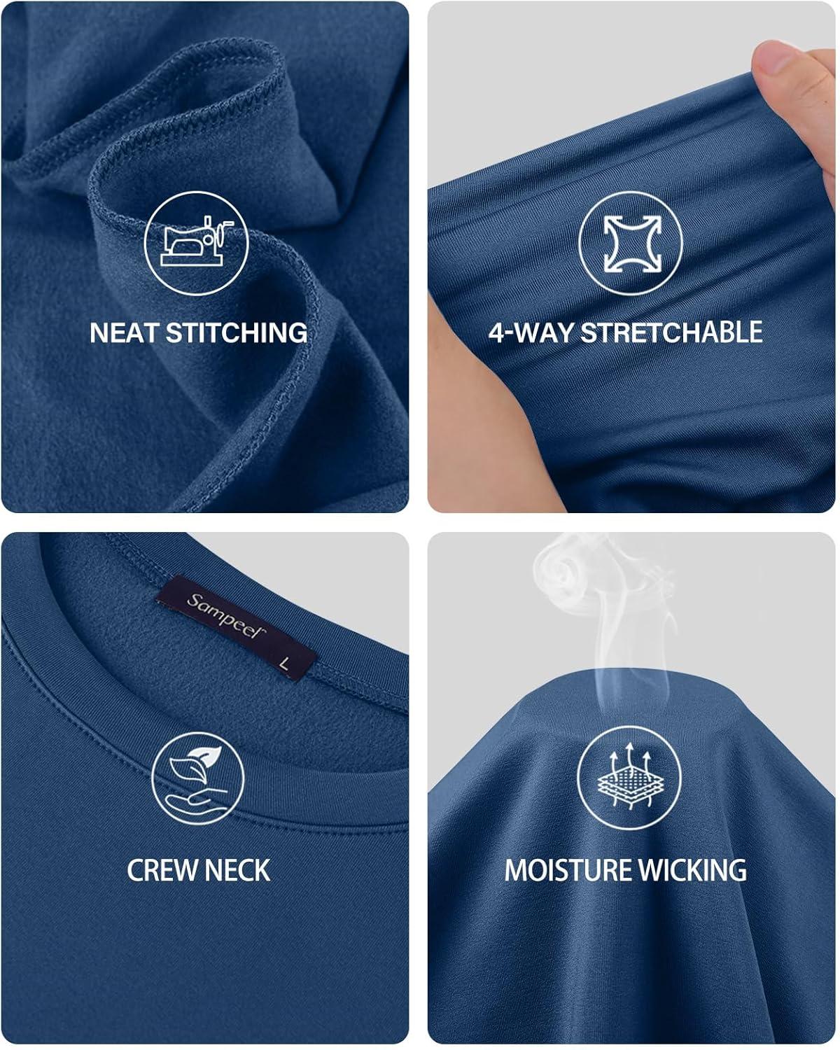Sampeel Thermal Underwear for Women Long Johns with Fleece Lined Long Sleeve Shirt Legging Lounge Set Cold Weather Top Bottom(Navy)