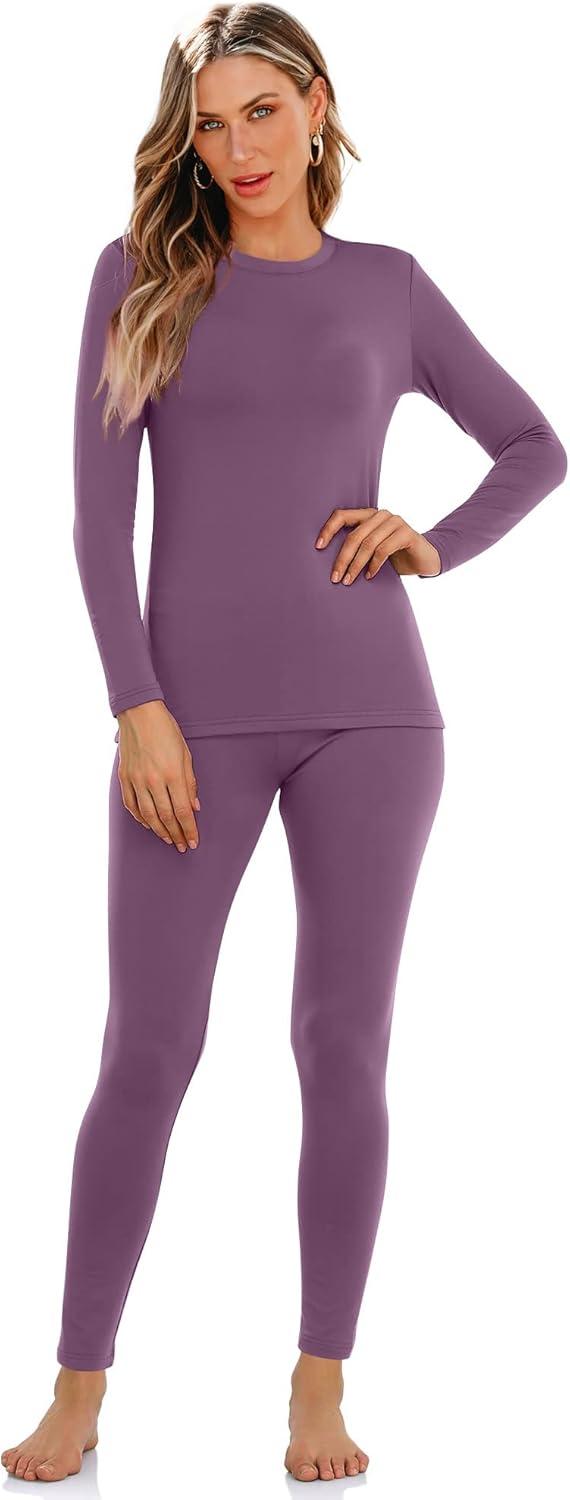 Sampeel Thermal Underwear for Women Long Johns with Fleece Lined Long Sleeve Shirt Legging Lounge Set Cold Weather Top Bottom(Purple)