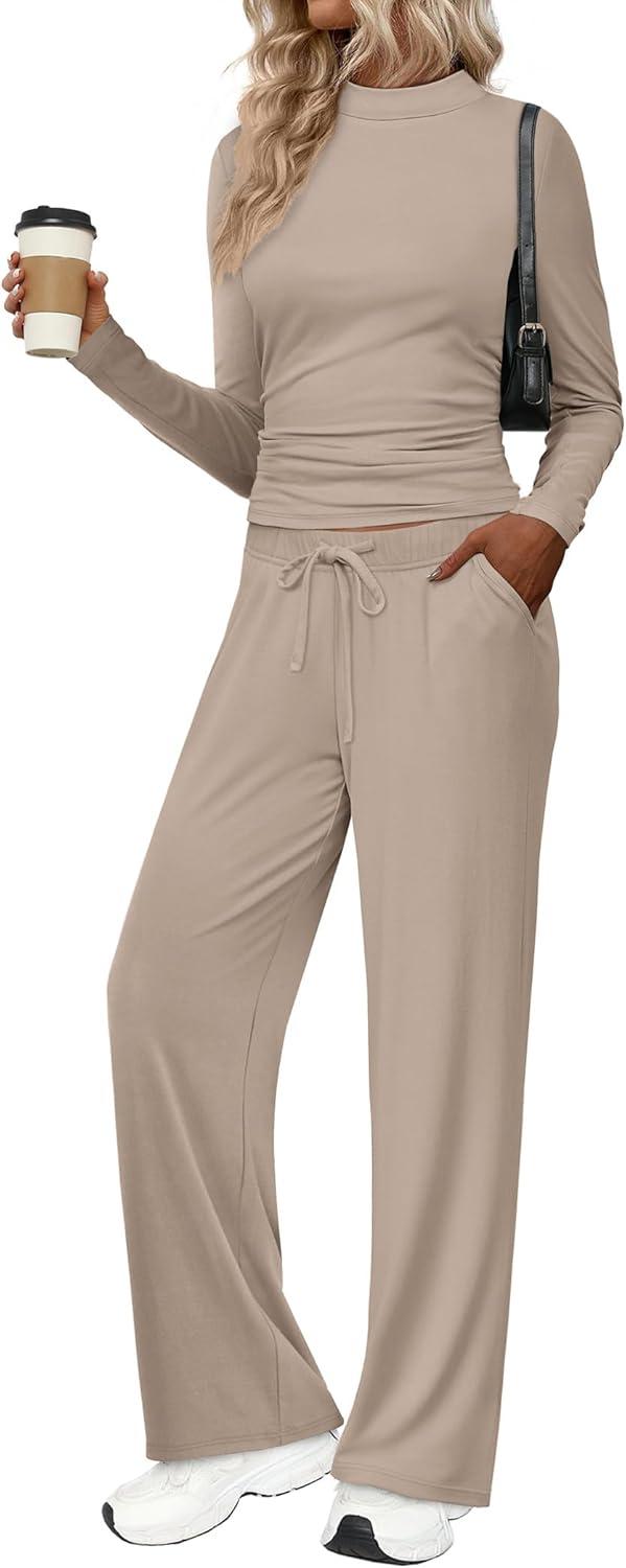 Be the first to review “Sampeel Two Piece Lounge Set for Women 2 Piece Fall Outfits 2025 Mock Neck Ruched Tops Wide Leg Pants Travel Airport(Apricot (Long))” Cancel reply