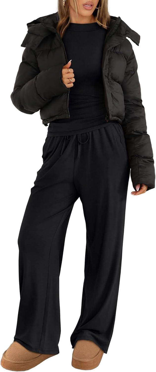 Be the first to review “Sampeel Two Piece Lounge Set for Women 2 Piece Fall Outfits 2025 Mock Neck Ruched Tops Wide Leg Pants Travel Airport(Black (Long))”