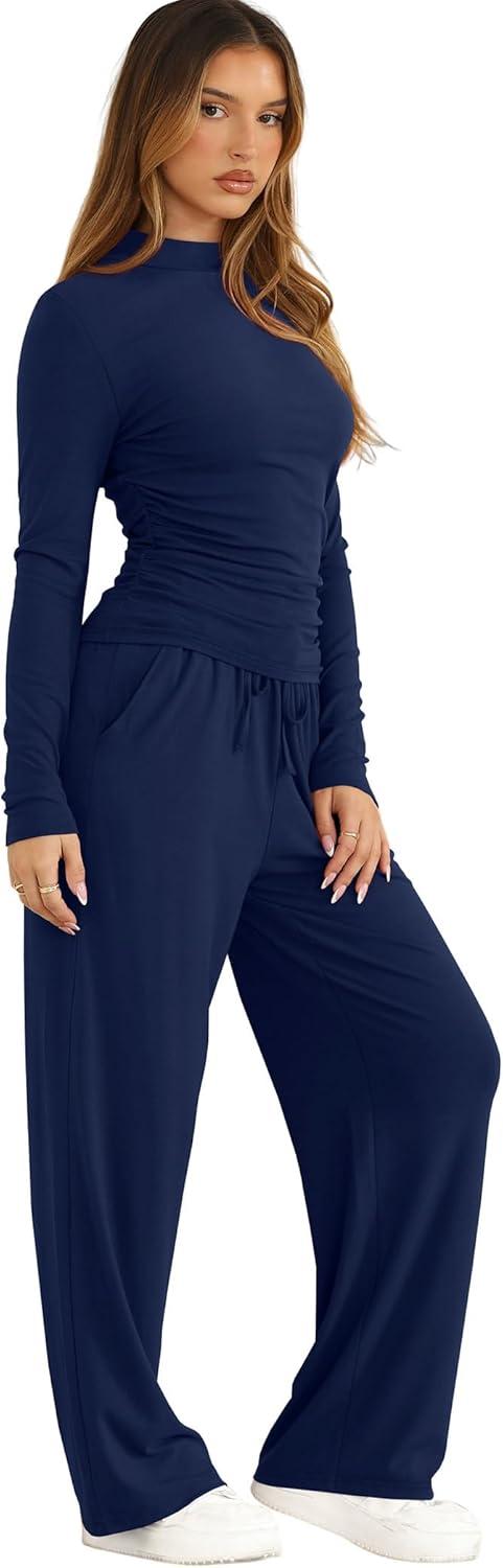 Be the first to review “Sampeel Two Piece Lounge Set for Women 2 Piece Fall Outfits 2025 Mock Neck Ruched Tops Wide Leg Pants Travel Airport(Navy Blue (Long))” Cancel reply