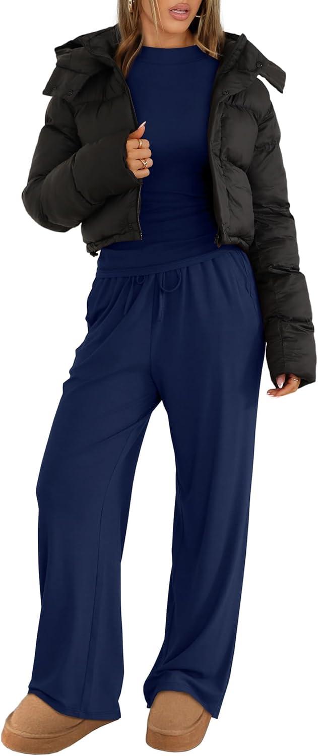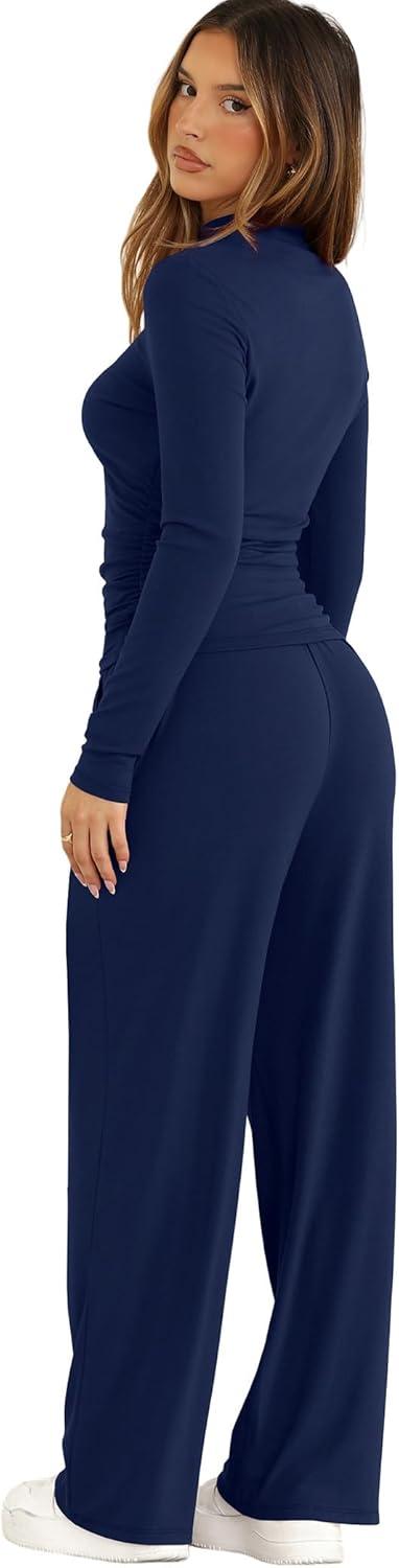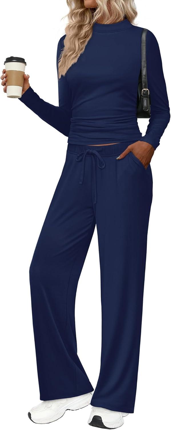 Be the first to review “Sampeel Two Piece Lounge Set for Women 2 Piece Fall Outfits 2025 Mock Neck Ruched Tops Wide Leg Pants Travel Airport(Navy Blue (Regular))” Cancel reply