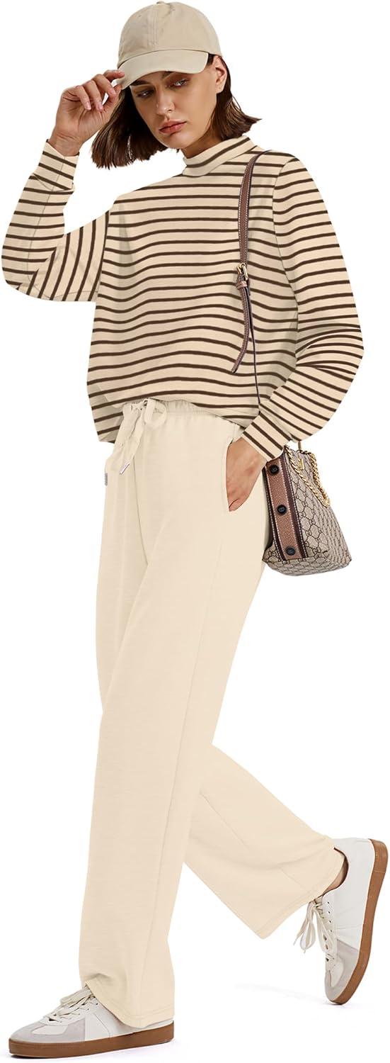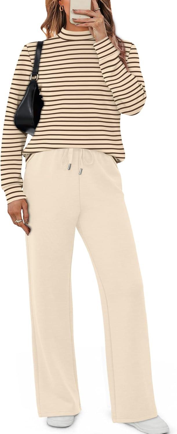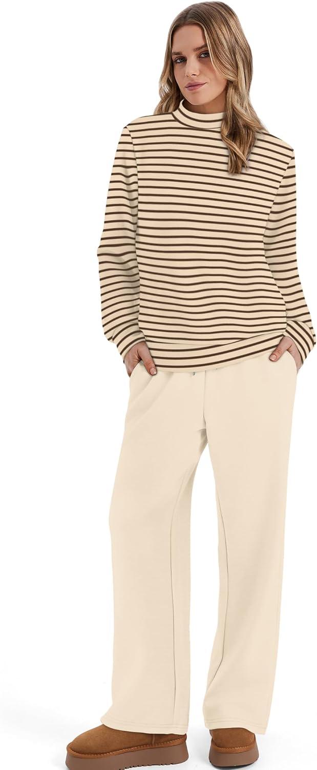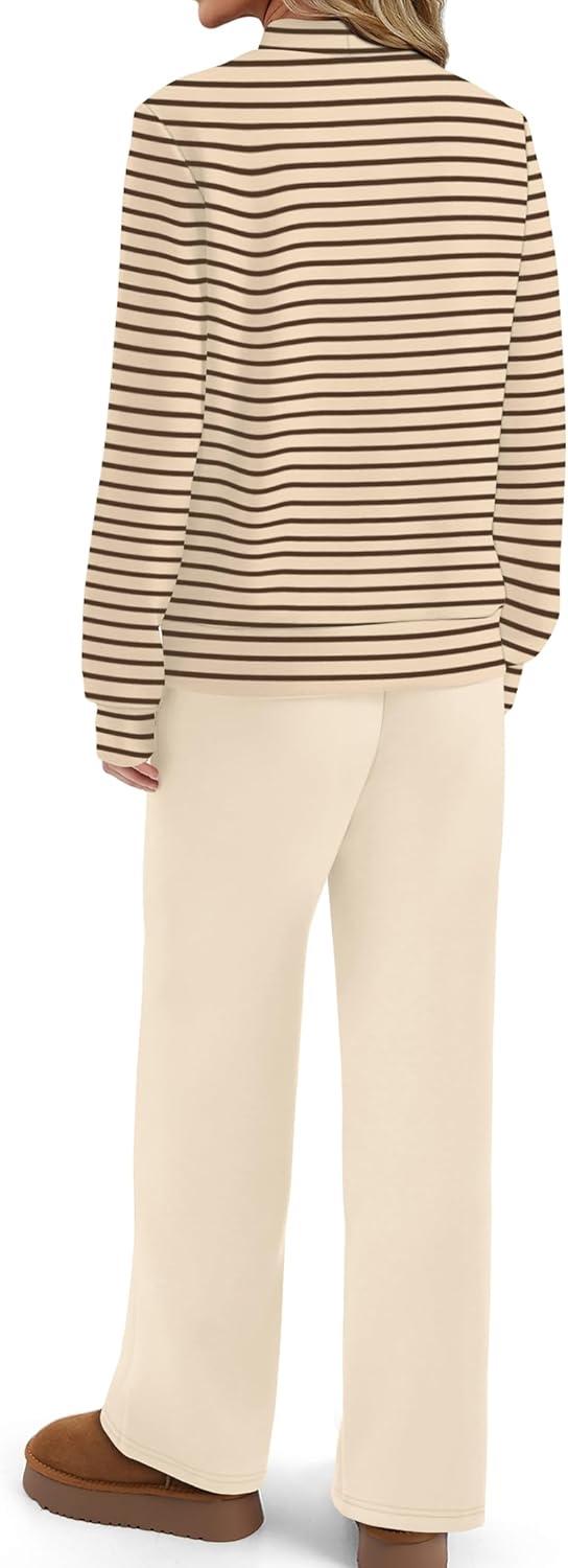 Sampeel Two Piece Sets for Women Mock Neck Matching Sets Loungewear Fall Clothes Travel Outfits Fashion 2025 XS-2XL(07-brown Beige Striped)