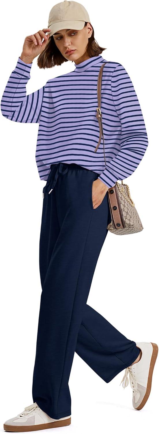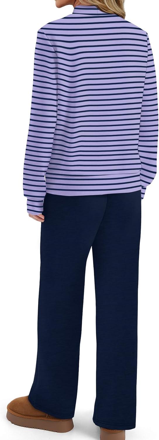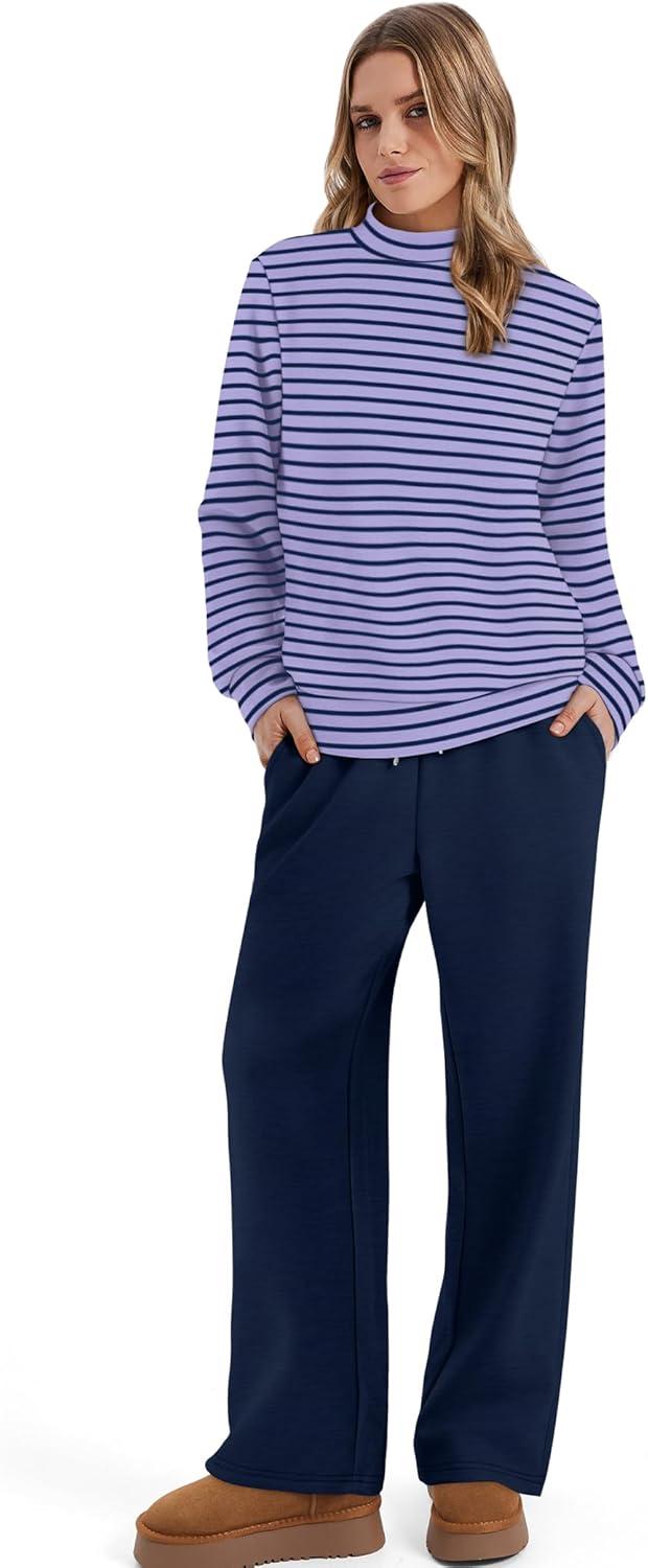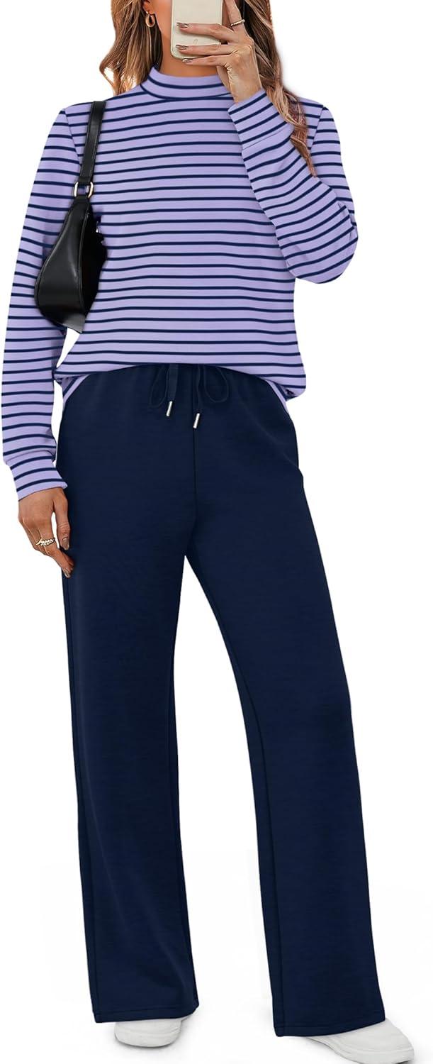 Sampeel Two Piece Sets for Women Mock Neck Matching Sets Loungewear Fall Clothes Travel Outfits Fashion 2025 XS-2XL(07-purple Blue Striped)
