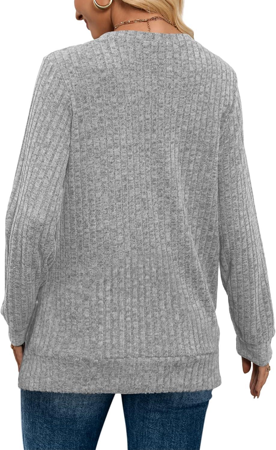 Sampeel V Neck Long Sleeve Shirts for Women Casual Fall Tops Lightweight Tunic Sweaters Fashion Clothes Loose Fit 2025(Grey)
