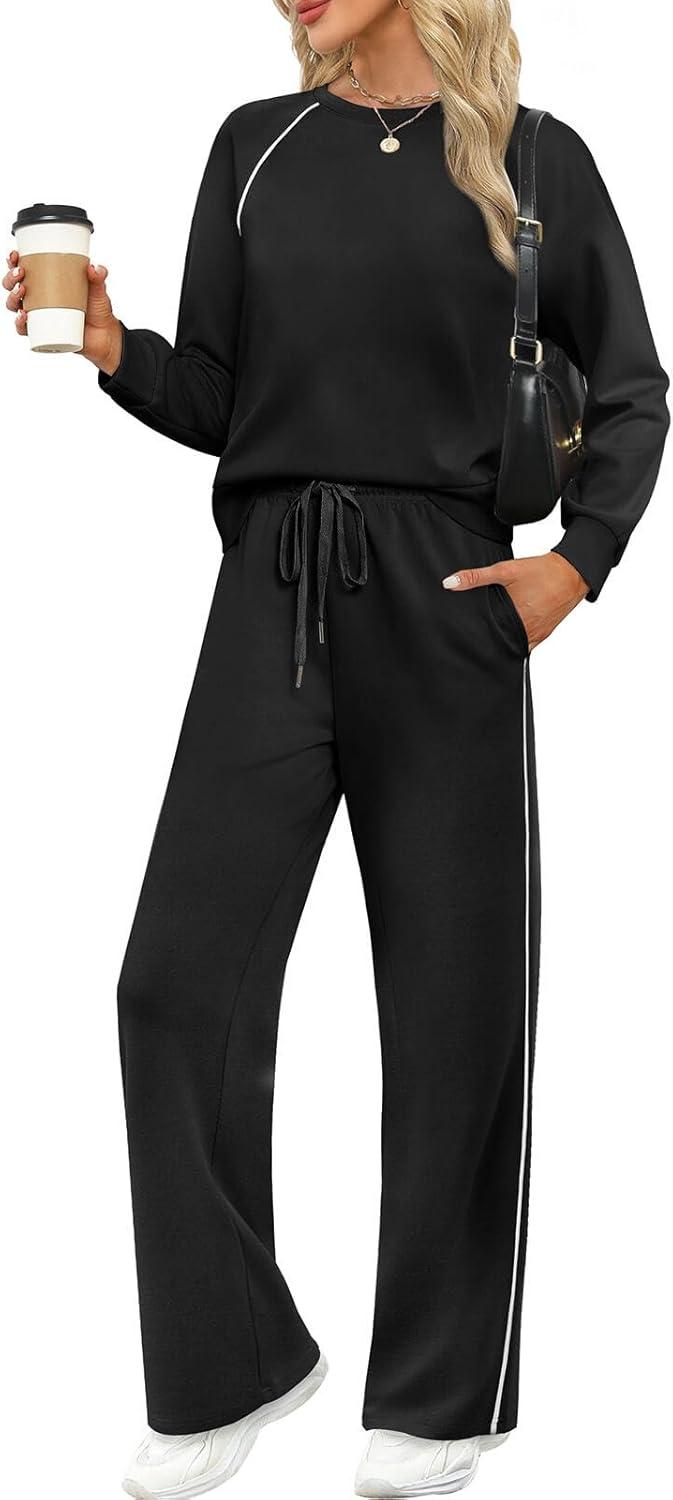 Sampeel Women 2 Piece Lounge Sets Sweatsuit Fall Outfits Matching Wide Leg pants Set Tracksuit Trendy Clothes(Black)