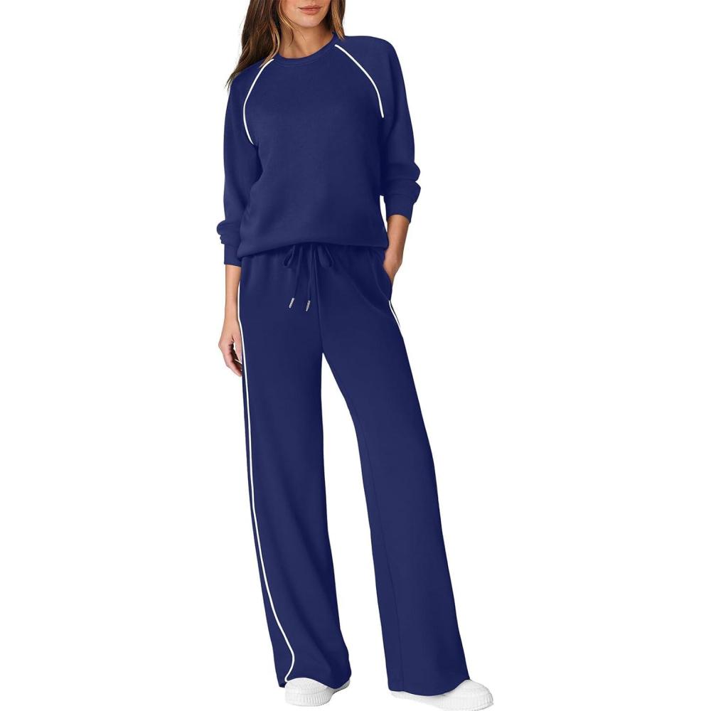 Sampeel Women 2 Piece Lounge Sets Sweatsuit Fall Outfits Matching Wide Leg pants Set Tracksuit Trendy Clothes(Dark Blue)