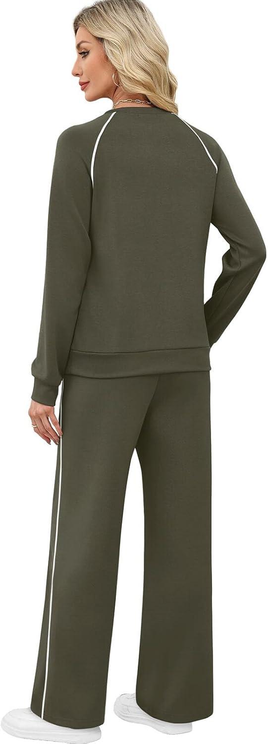 imageSampeel Women 2 Piece Lounge Sets Sweatsuit Fall Outfits Matching Wide Leg pants Set Tracksuit Trendy ClothesGreen