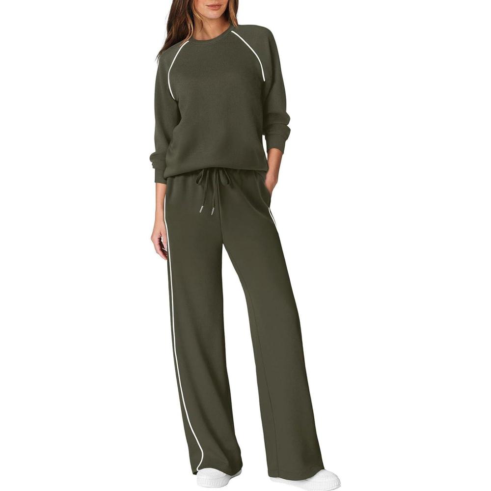 Sampeel Women 2 Piece Lounge Sets Sweatsuit Fall Outfits Matching Wide Leg pants Set Tracksuit Trendy Clothes(Green)