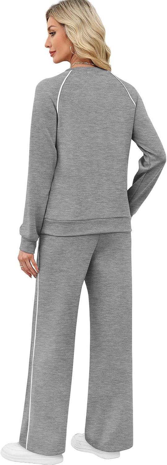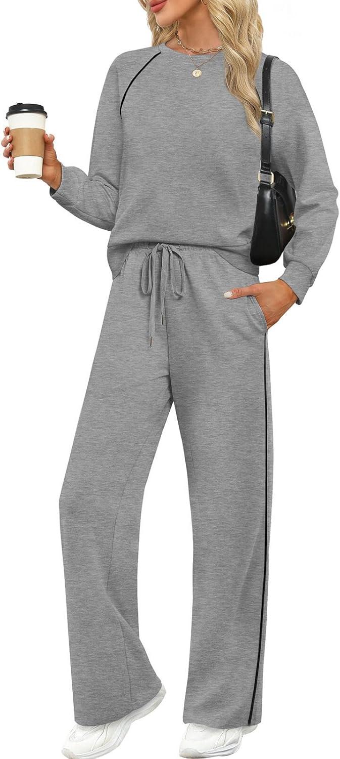 Sampeel Women 2 Piece Lounge Sets Sweatsuit Fall Outfits Matching Wide Leg pants Set Tracksuit Trendy Clothes(Grey)