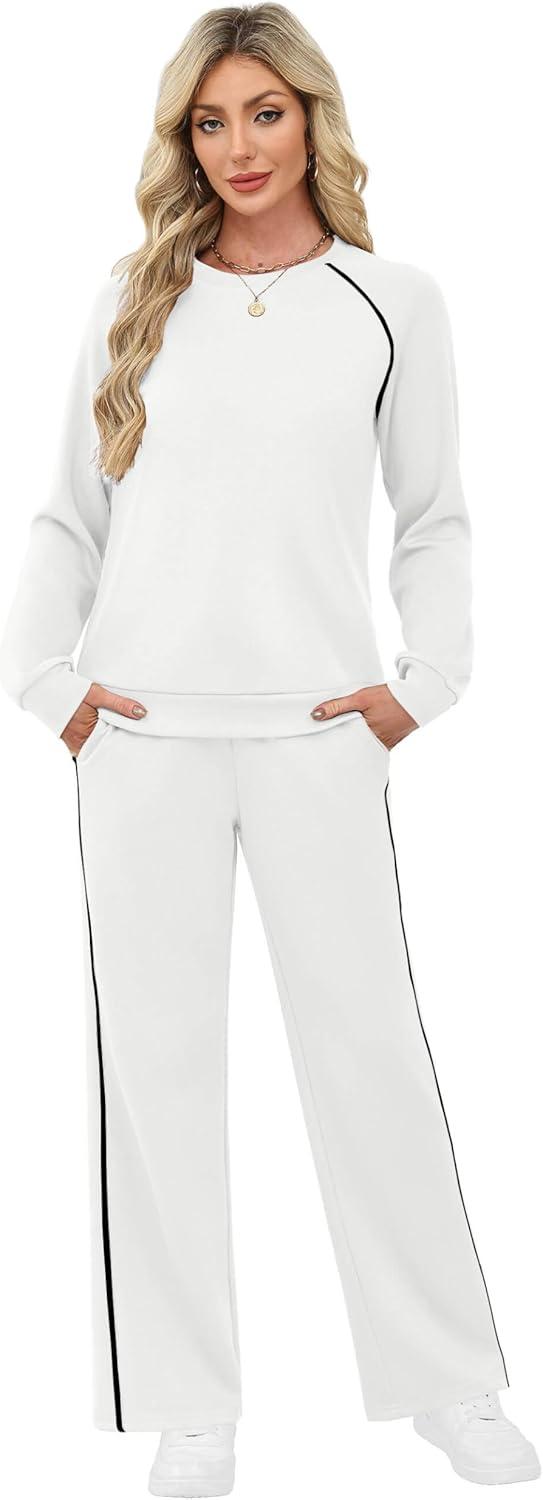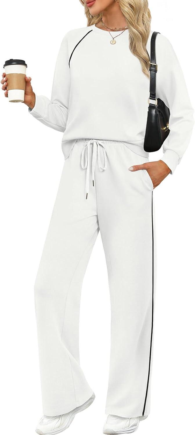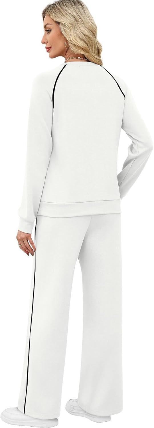 Sampeel Women 2 Piece Lounge Sets Sweatsuit Fall Outfits Matching Wide Leg pants Set Tracksuit Trendy Clothes(White)