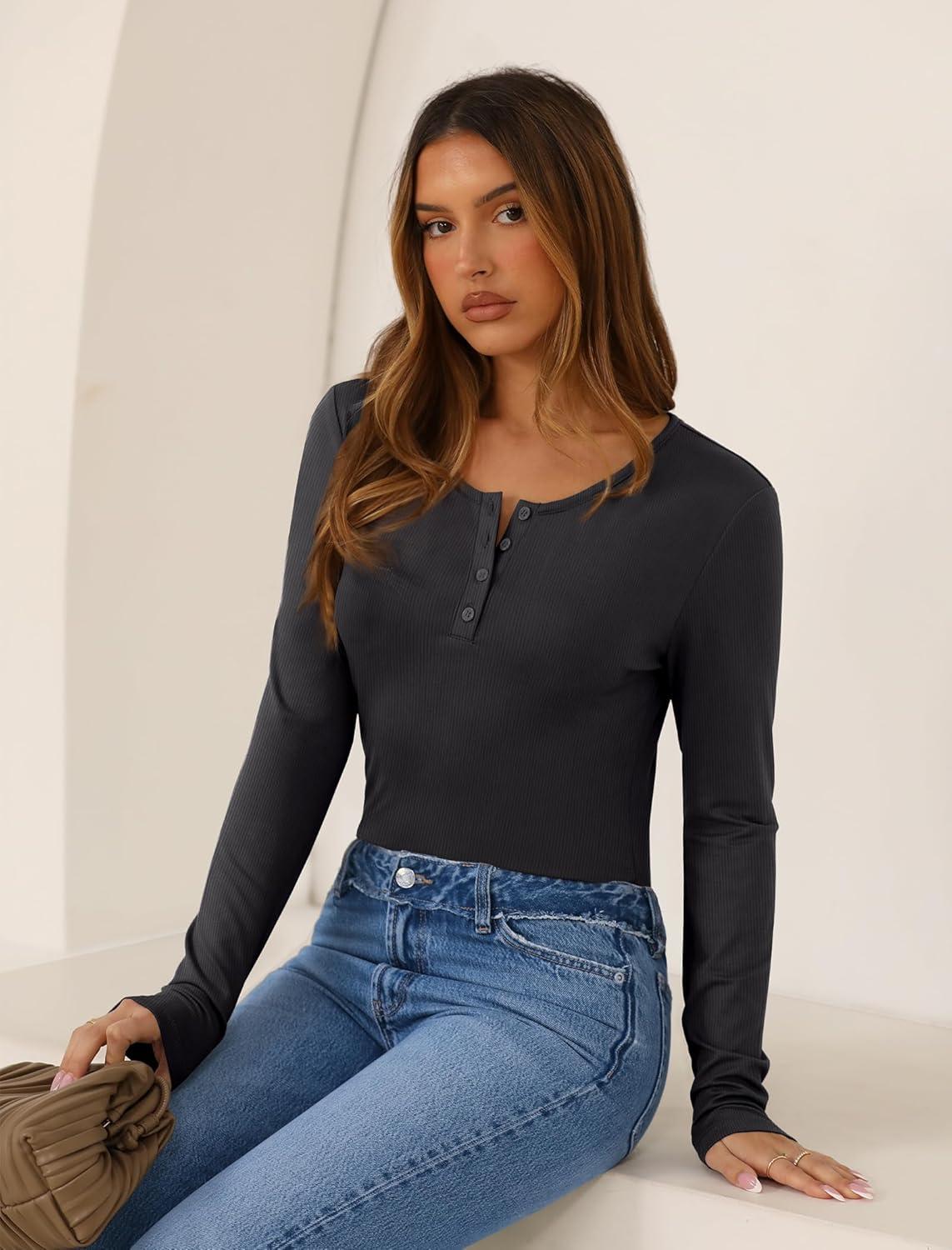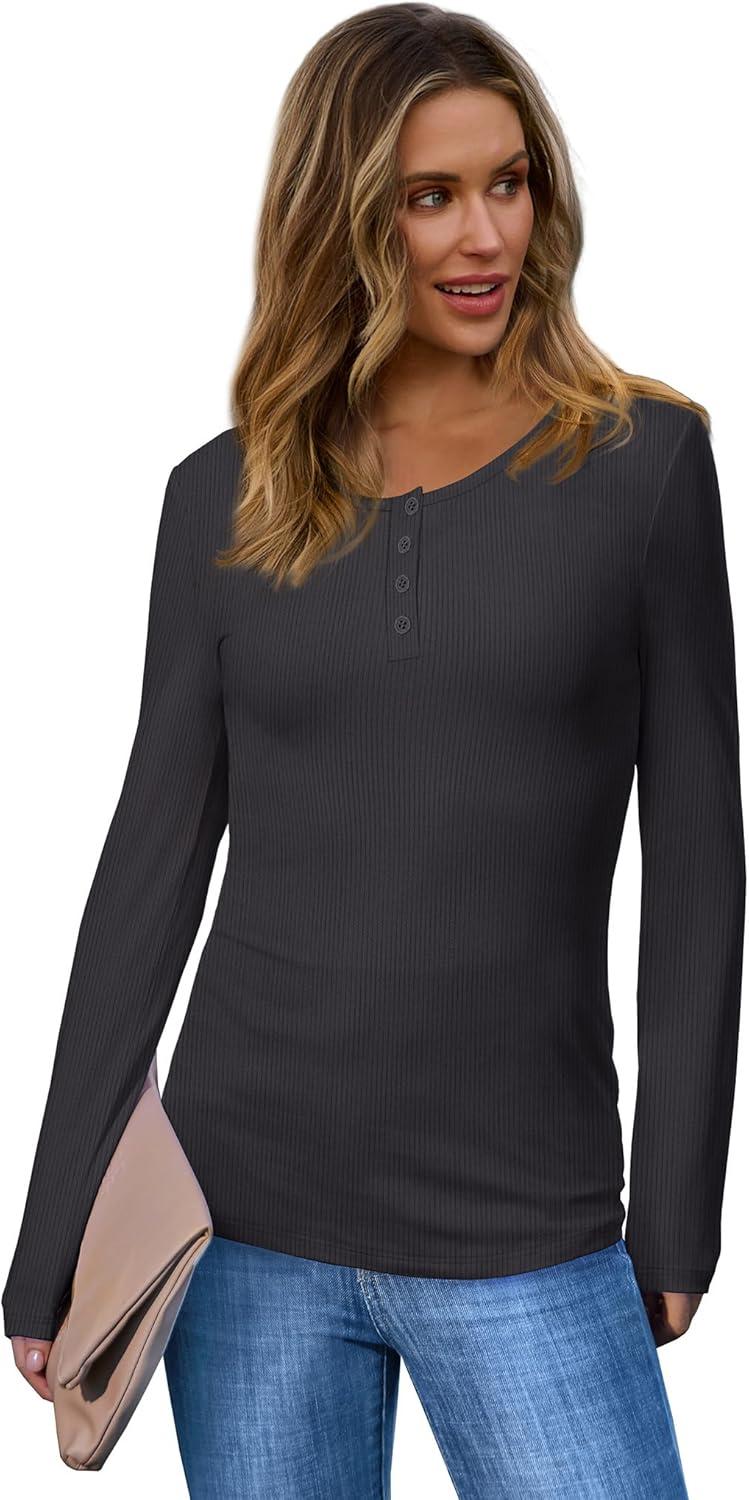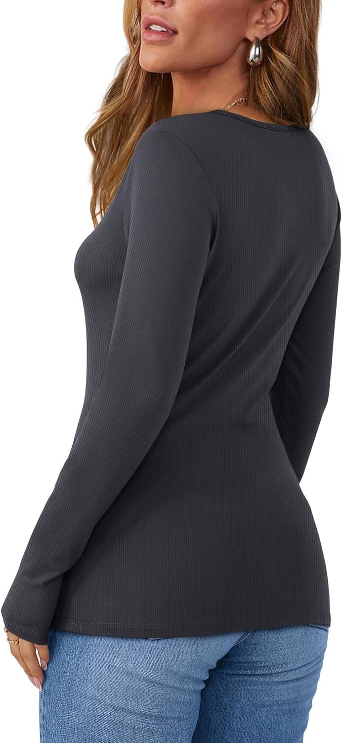 SAMPEEL Womens Long Sleeve Henley Shirts Slim Fit Tops 2025 Casual Fashion Outfits Basic Trendy T-Shirts Soft Clothing(Grey)
