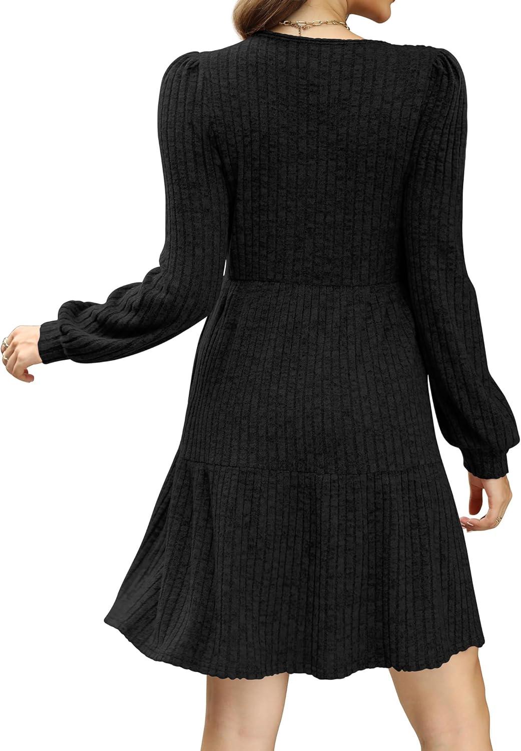 Sampeel Womens Square Neck Long Sleeve Fall Dresses Casual Babydoll Sweater Dress(Black)