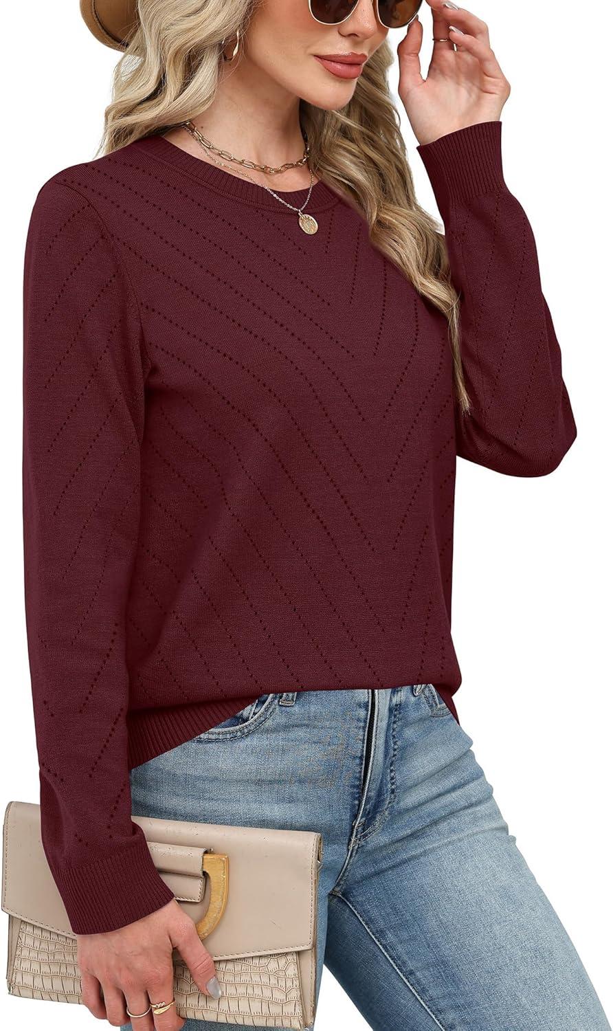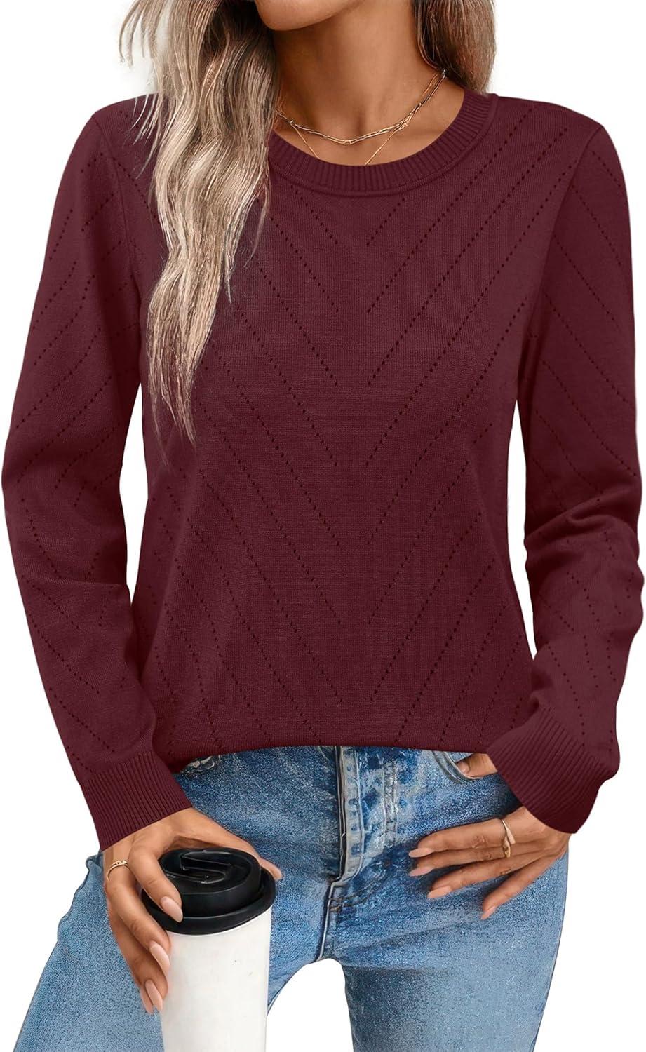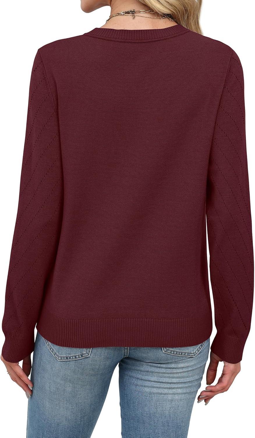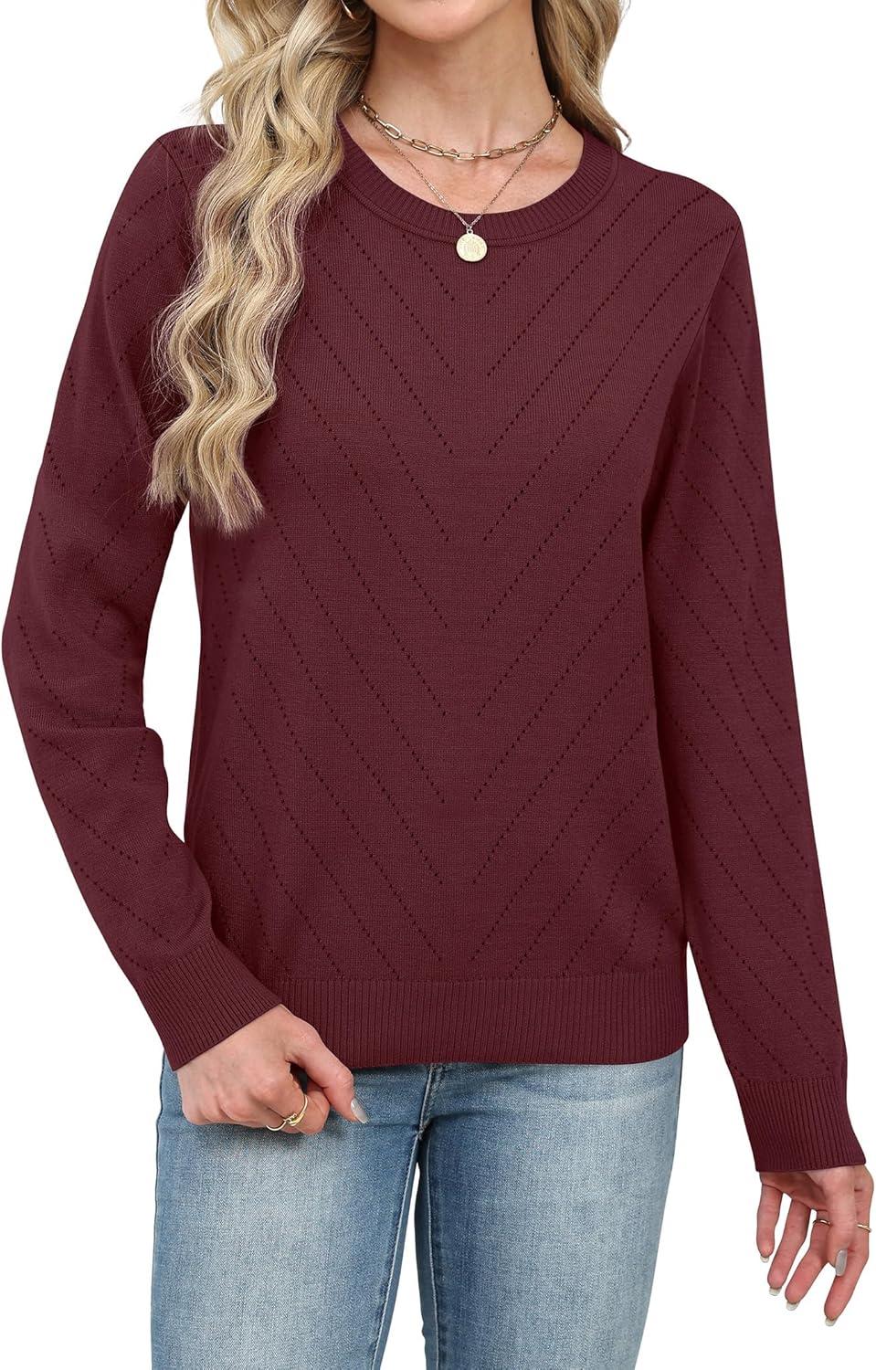 Sampeel Womens Sweaters Crew Neck Long Sleeve Tops Knit Soft Pullover Sweaters Cozy Dressy Casual Shirts Fashion Clothing(Burgundy)