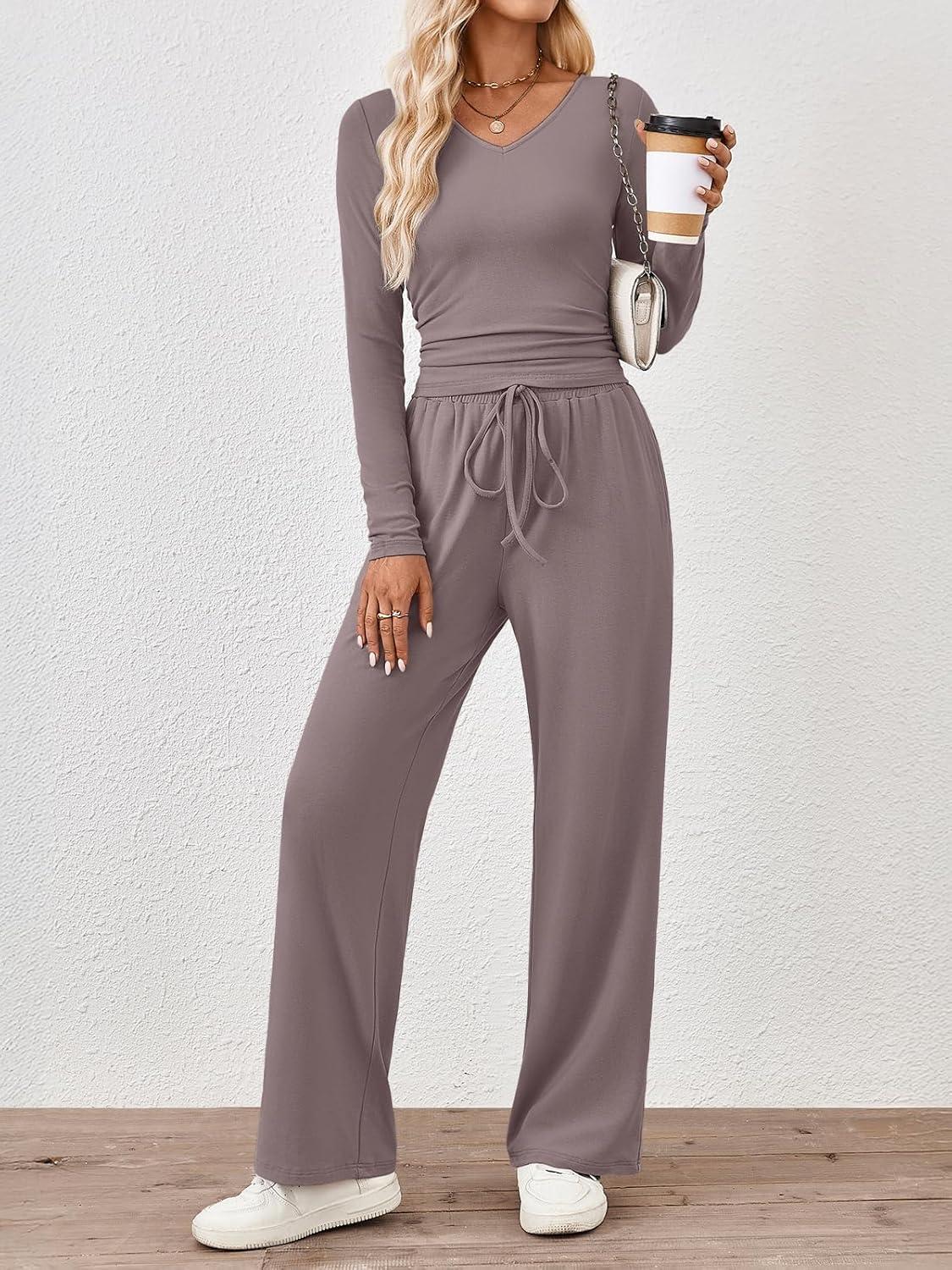 Trendy Queen 2 Piece Lounge Sets for Women Fall Outfits 2025 Fashion Two Piece Sweatsuits Business Casual Outfits Clothes(Rose Taupe)
