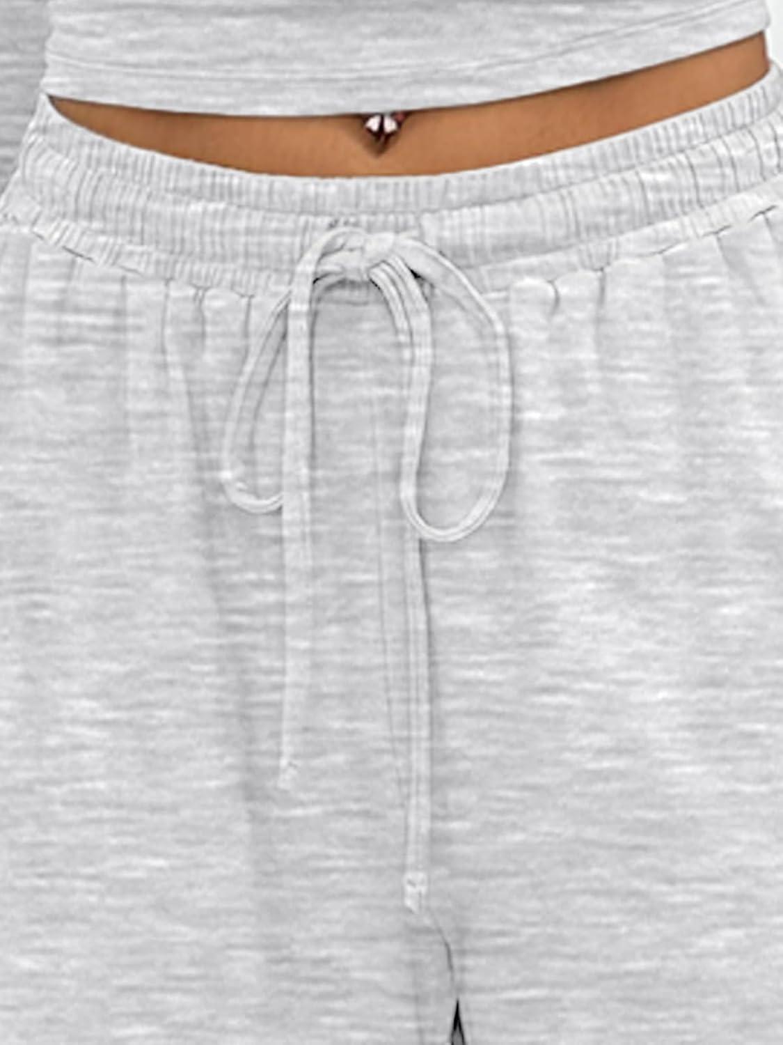 image:imageTrendy Queen 2 Piece Off Shoulder Set Womens Wide Leg Pants Side Ruching Slightly Crop Top SetsOatmeal Grey
