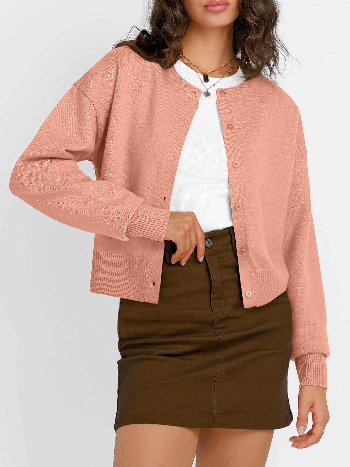 Trendy Queen Cropped Cardigan Sweaters for Women Lightweight Crop Knit Y2k Fall Outfits Fashion Clothes 2025(Coral)