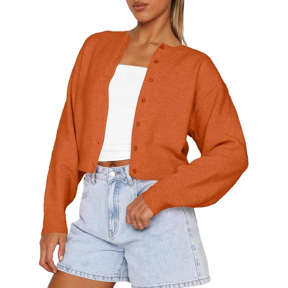 Trendy Queen Cropped Cardigan Sweaters for Women Lightweight Crop Knit Y2k Fall Outfits Fashion Clothes 2025(Orange)