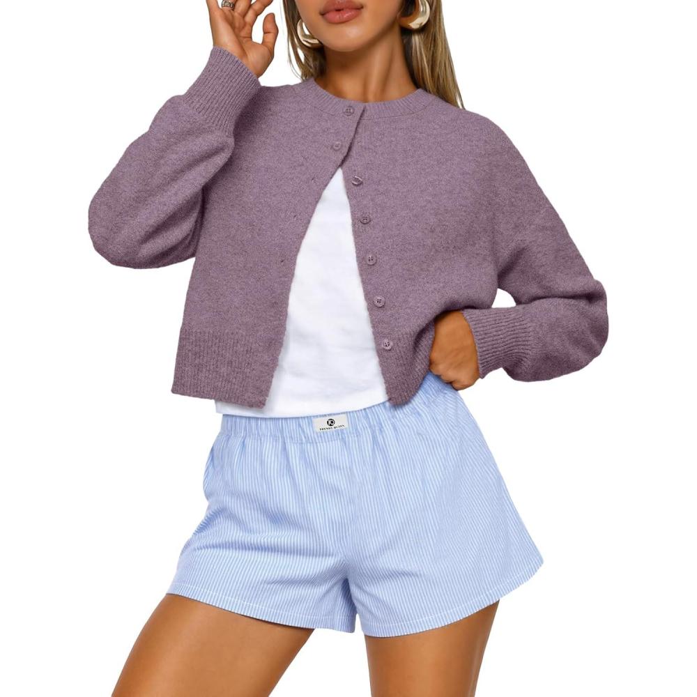 Trendy Queen Cropped Cardigan Sweaters for Women Lightweight Crop Knit Y2k Fall Outfits Fashion Clothes 2025(Purple)