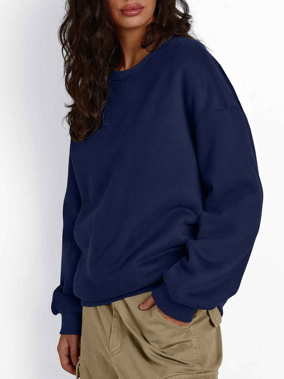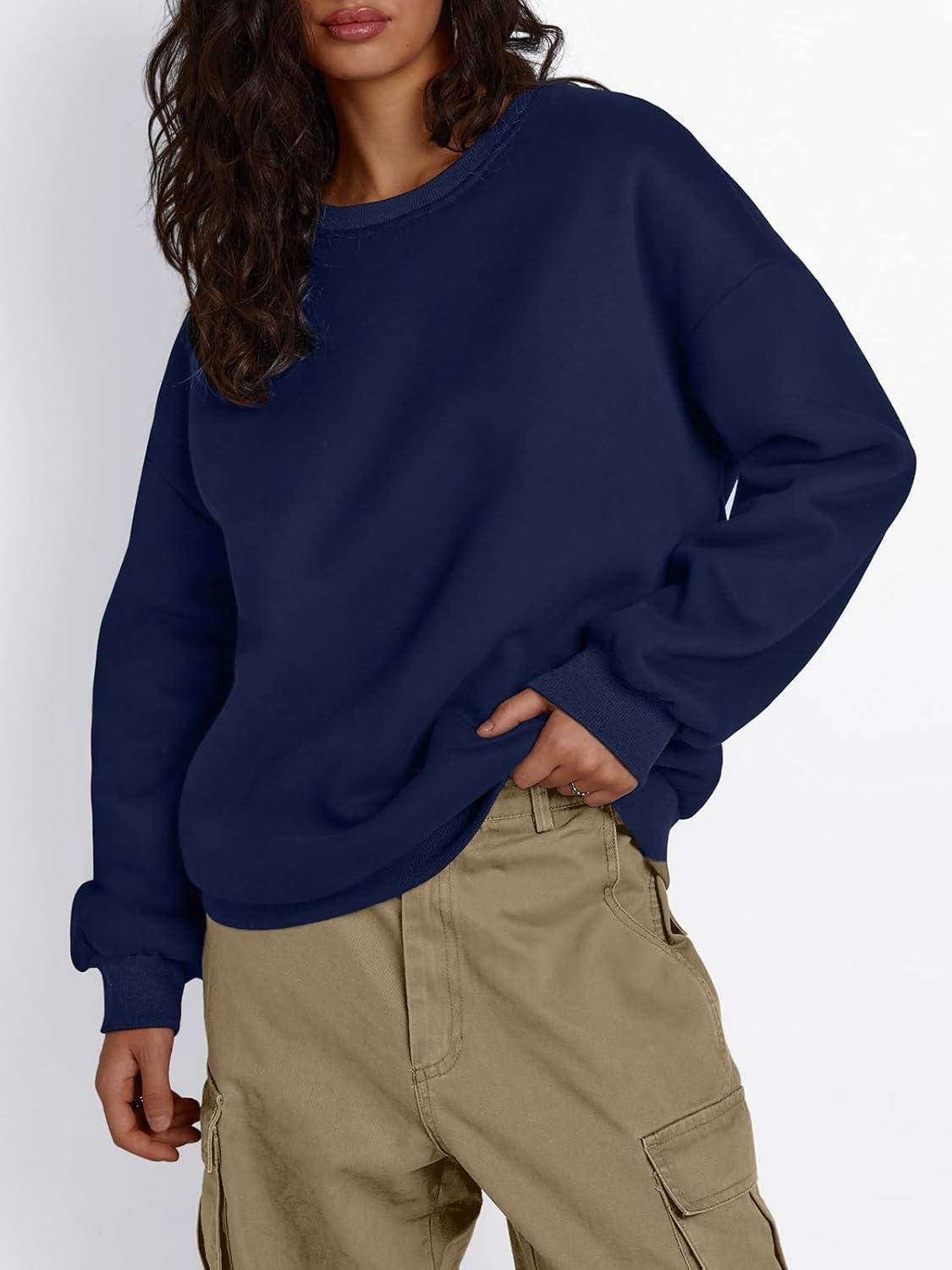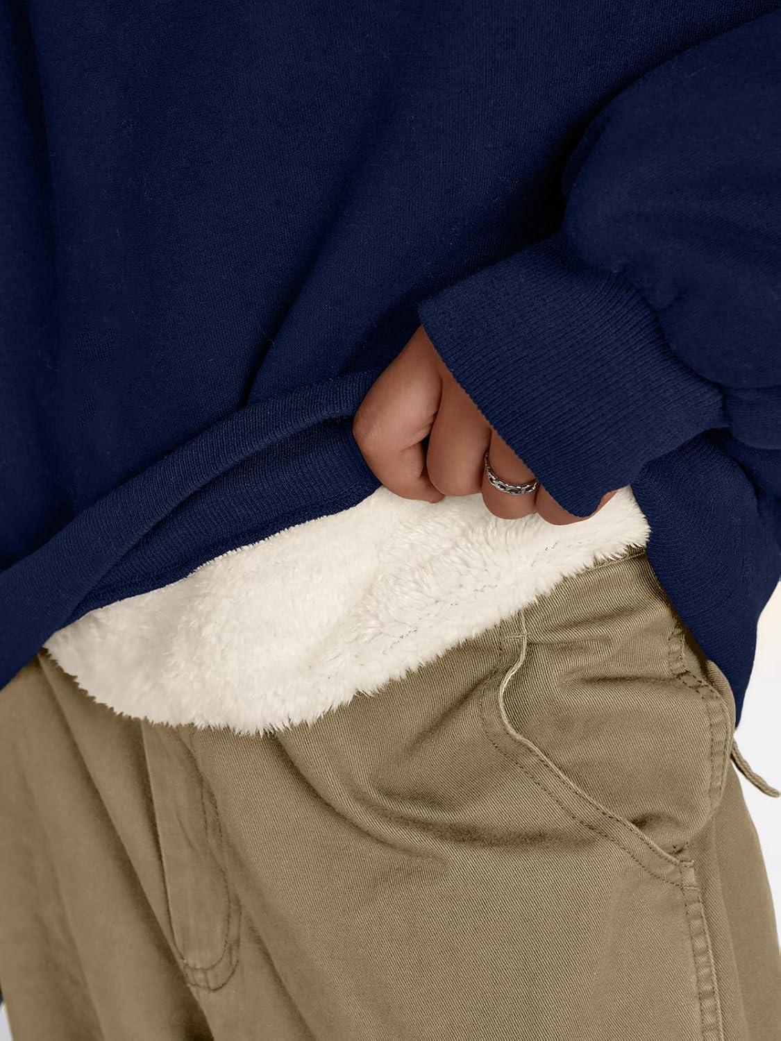 Trendy Queen Fleece Sherpa Lined Sweatshirts for Women 2025 Fall Fashion Winter Crewneck Pullover Hoodies Outfits Clothes(Navy)