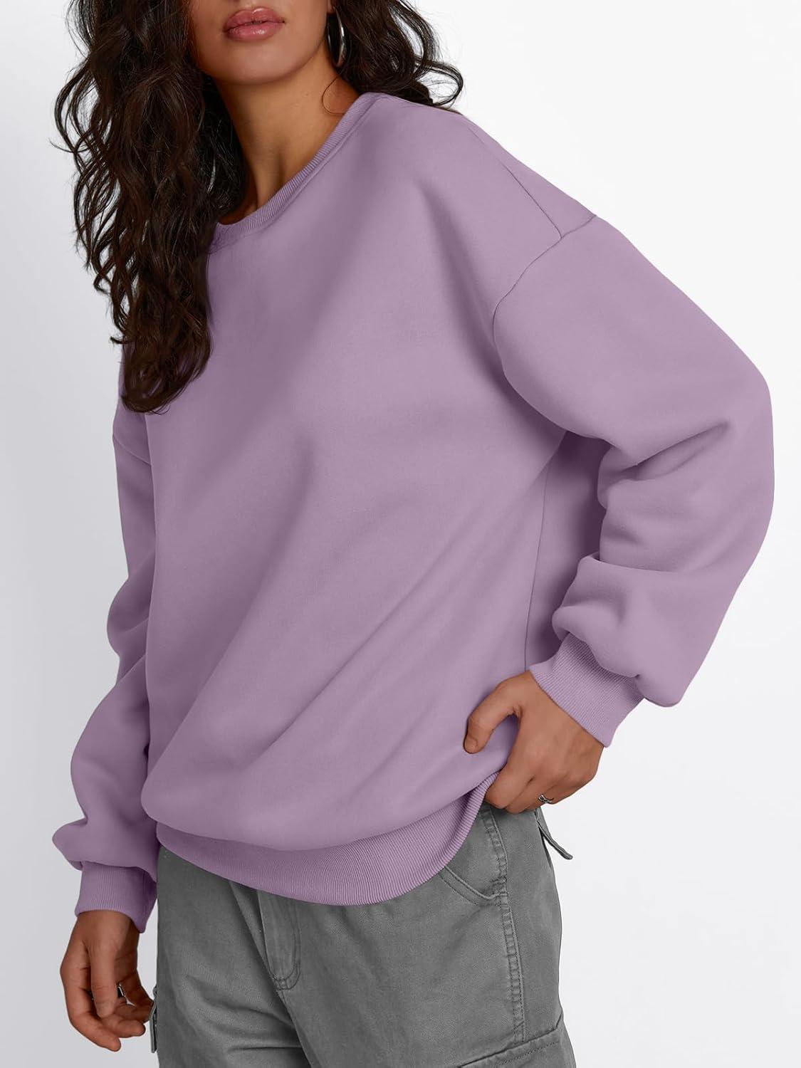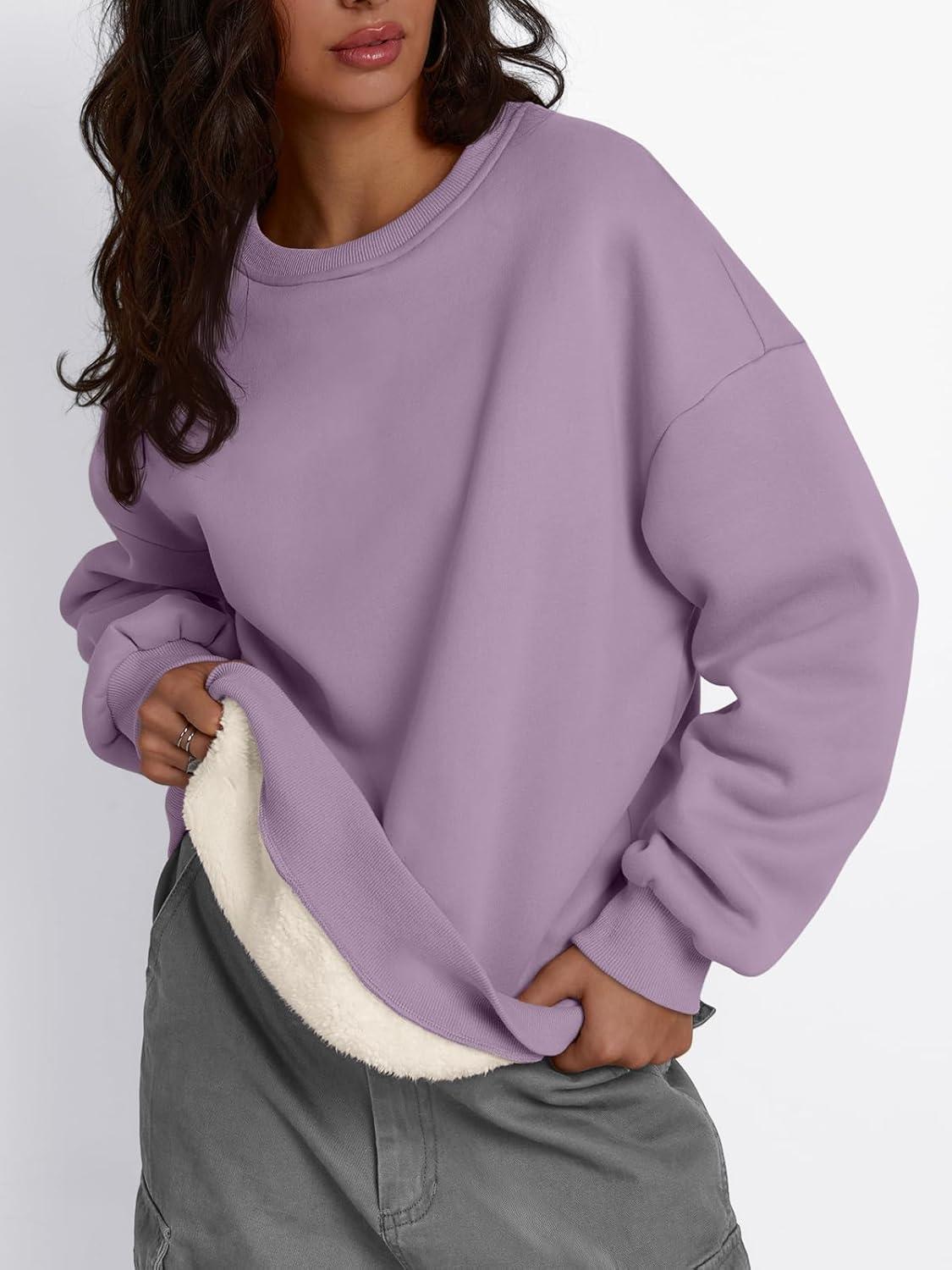 Trendy Queen Fleece Sherpa Lined Sweatshirts for Women 2025 Fall Fashion Winter Crewneck Pullover Hoodies Outfits Clothes(Purple)
