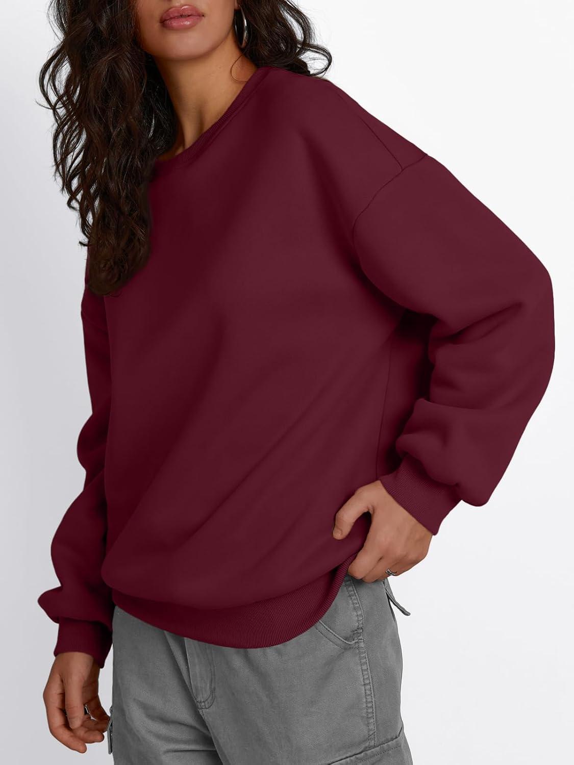 Trendy Queen Fleece Sherpa Lined Sweatshirts for Women 2025 Fall Fashion Winter Crewneck Pullover Hoodies Outfits Clothes(Wine Red)