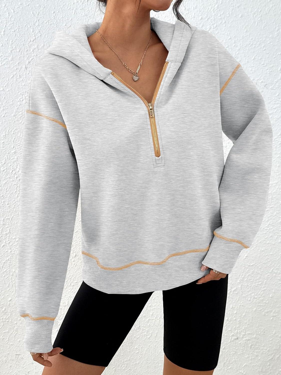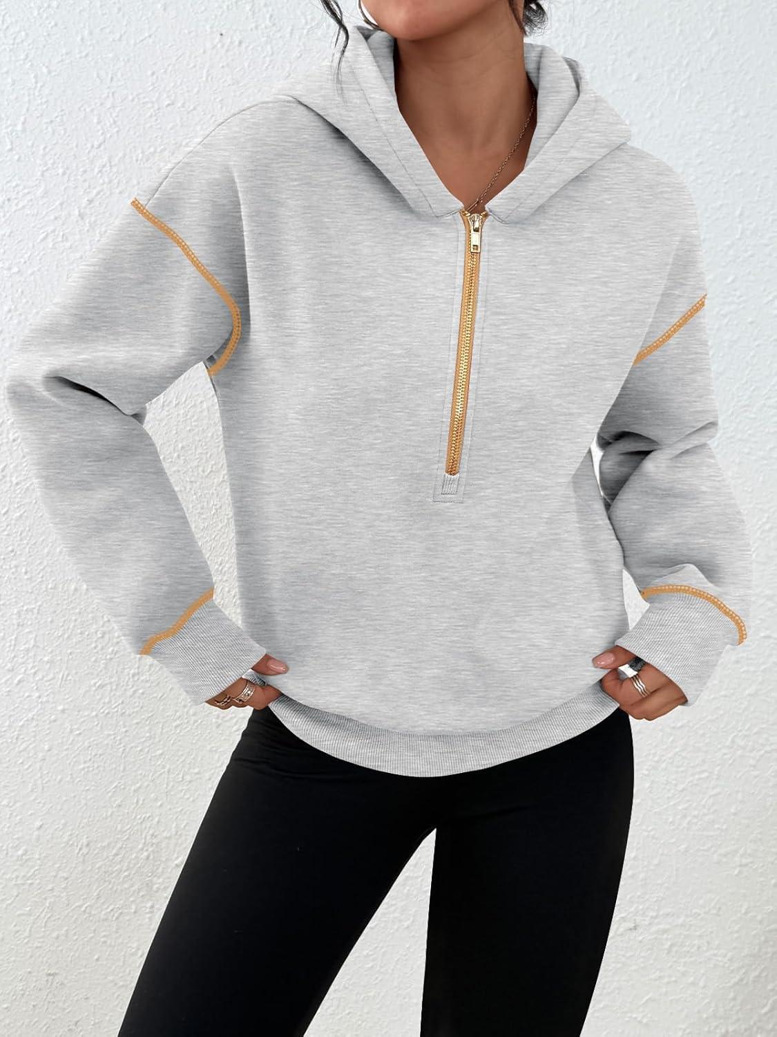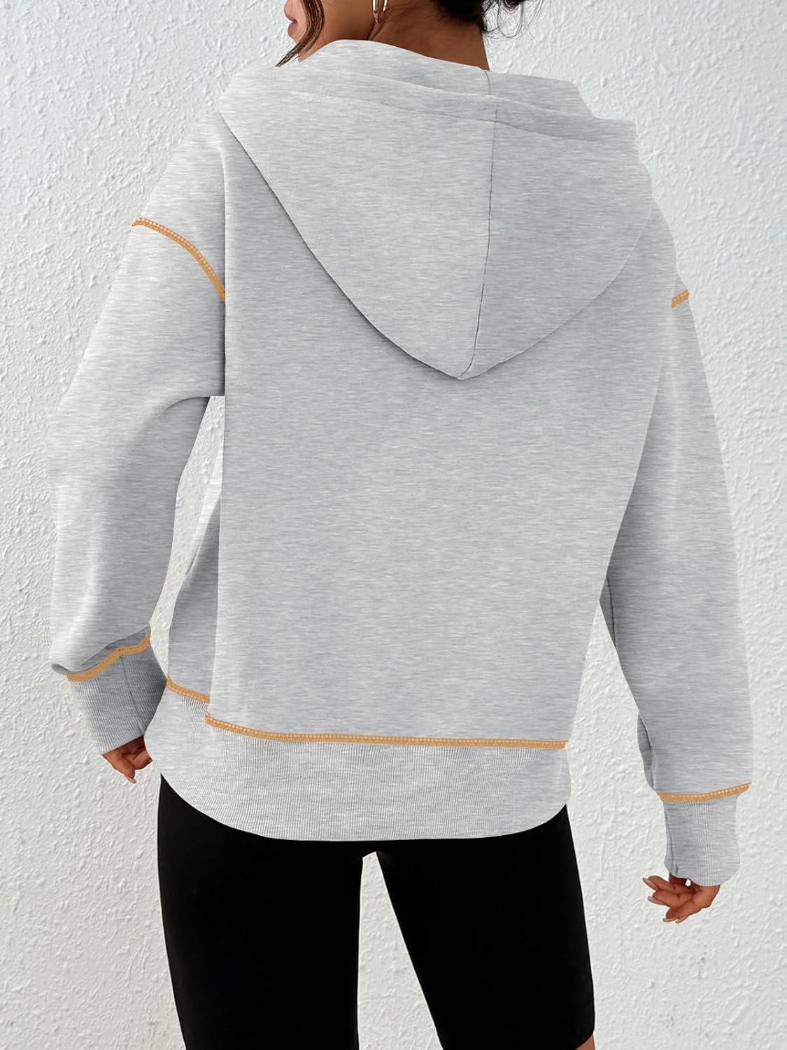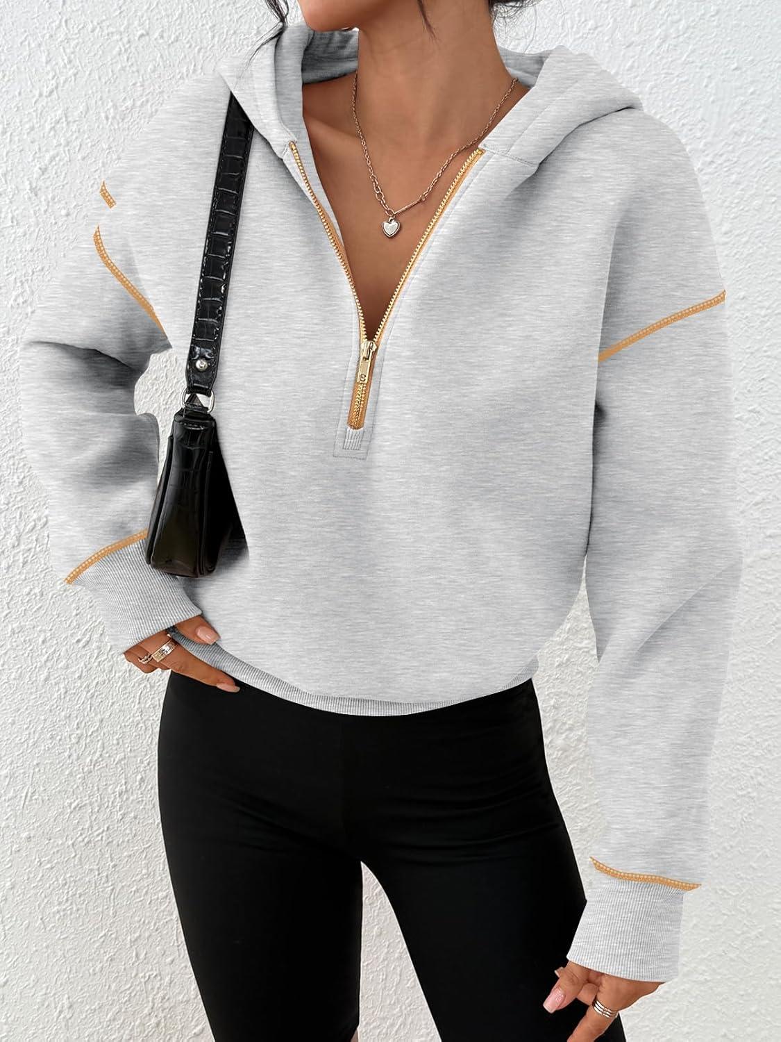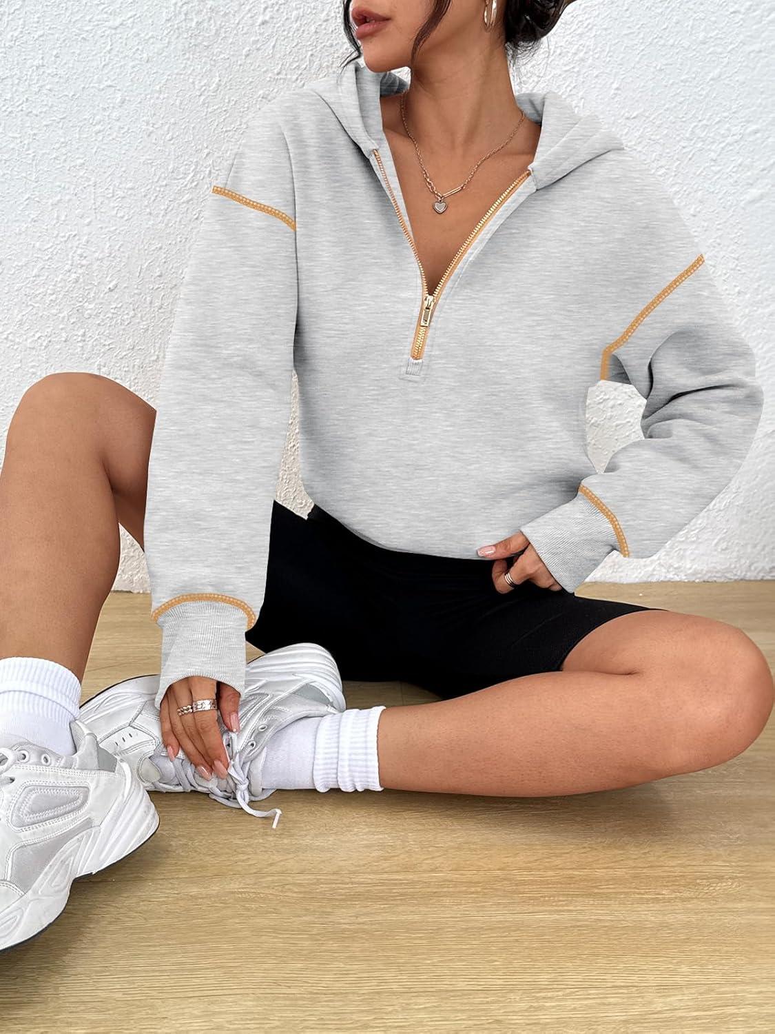 Trendy Queen Half Zip Pullover Cropped Hoodies for Women Y2k Cute Sweatshirts Jackets Fall Fashion 2025 Outfits Clothing(Grey)
