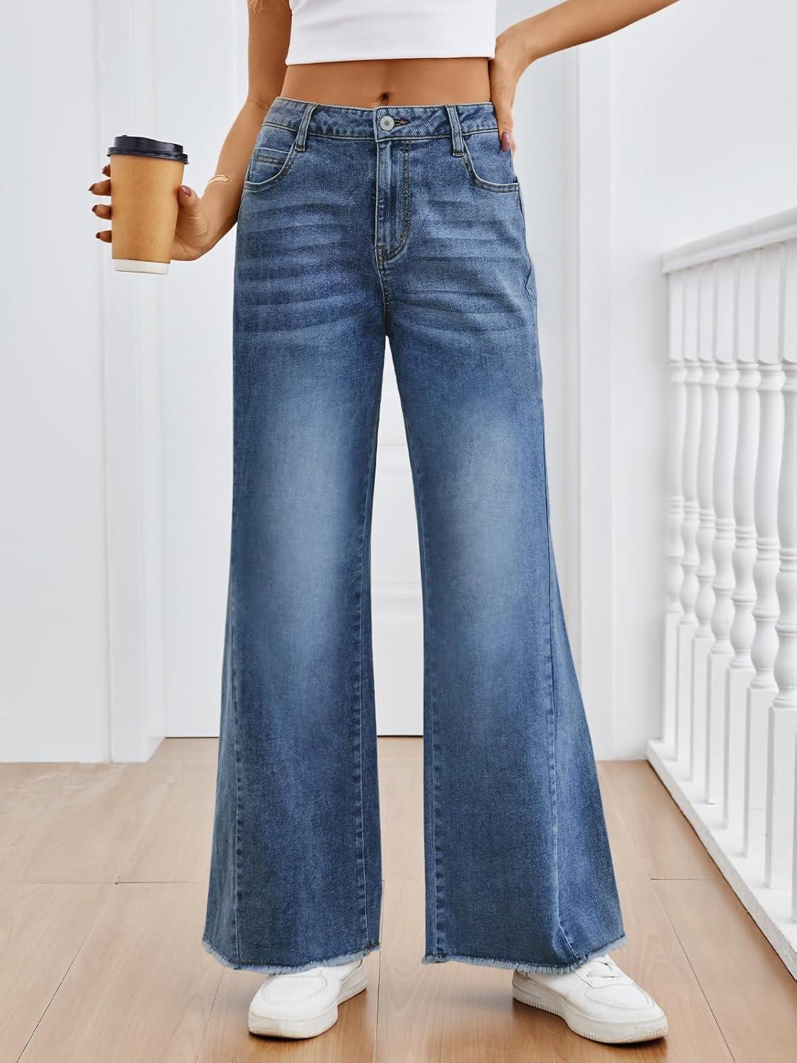 Trendy Queen Jeans for Women High Waisted Wide Straight Leg Stretchy Baggy Jeans Fashion Loose Denim Pants Fall 2025(Haze Blue)