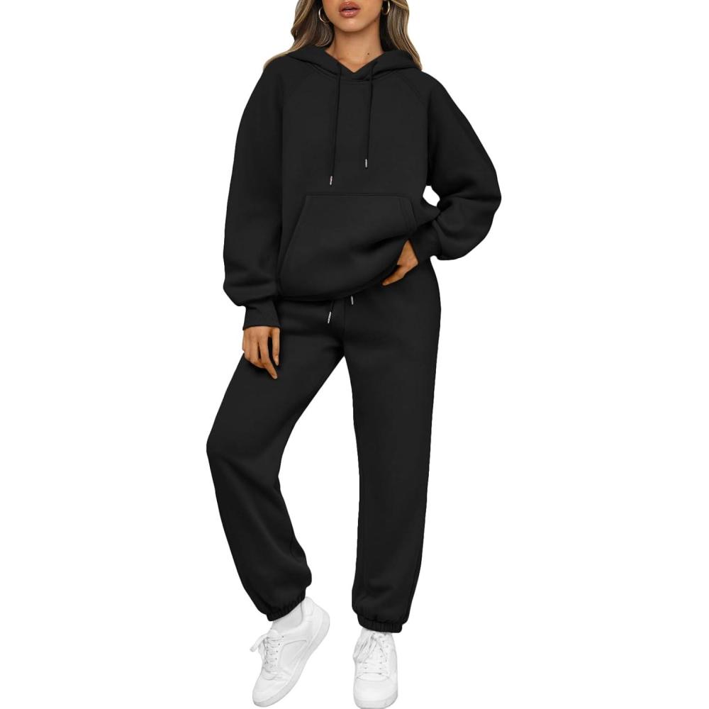 Trendy Queen Sweatsuits Women 2 Piece Outfits Lounge Two Piece Sets Sweatshirts Sweatpants Hoodies Tracksuits with Pockets(Black)