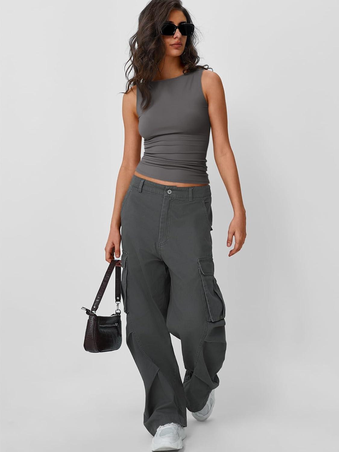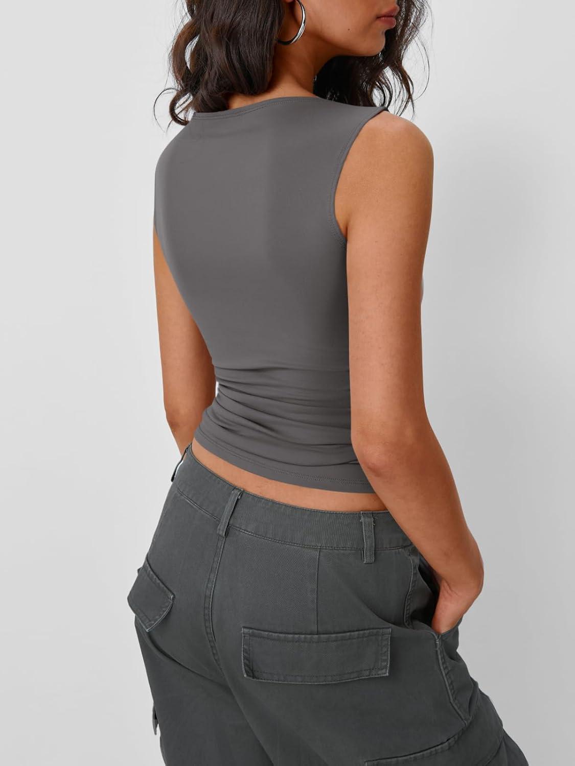 Trendy Queen Women Going Out Summer Tank Tops Spring Casual Basic Cute 2026 Sleeveless Shirt Vacation Fashion Outfit Clothes(Grey)