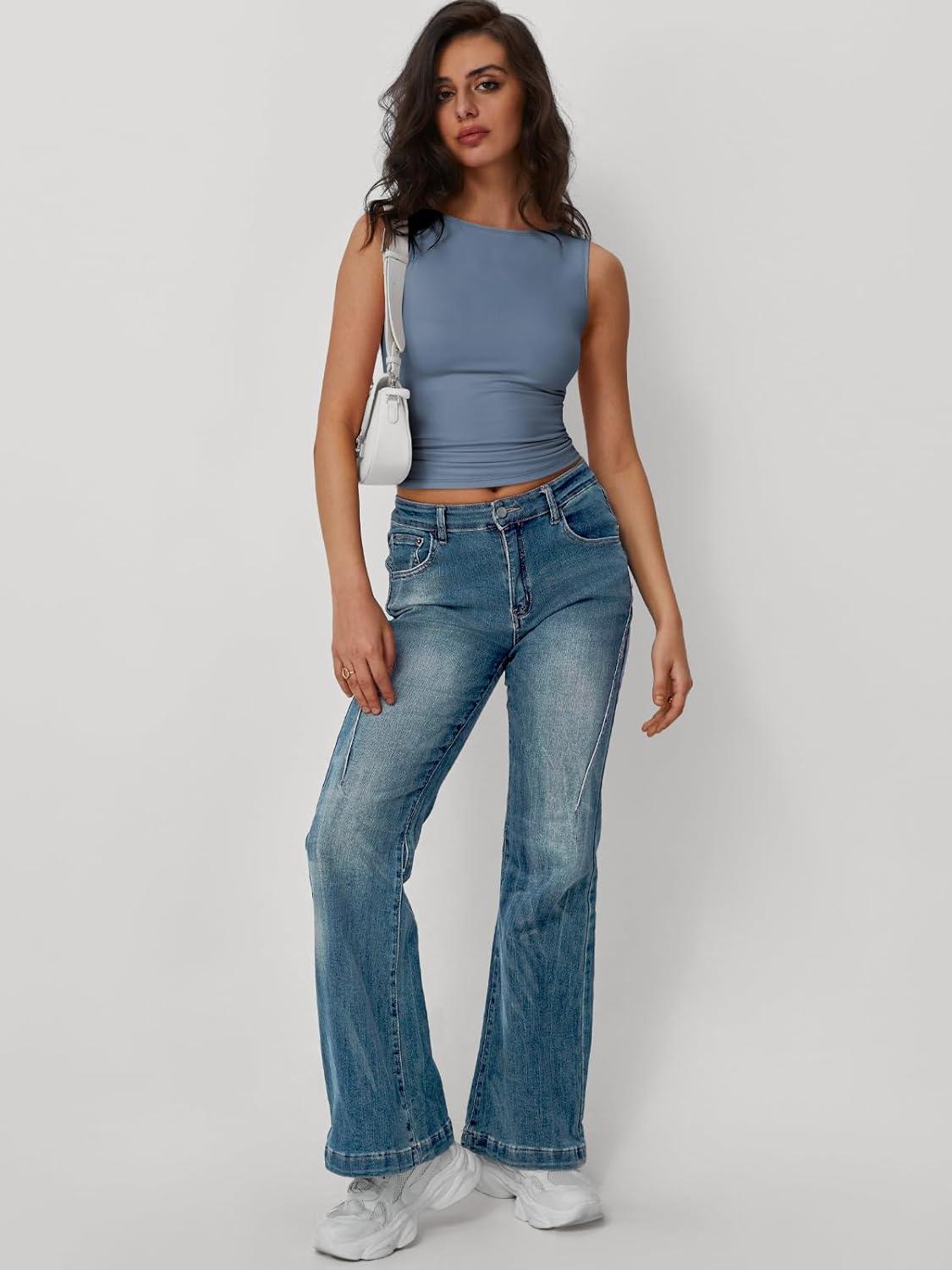 Trendy Queen Women Going Out Summer Tank Tops Spring Casual Basic Cute 2026 Sleeveless Shirt Vacation Fashion Outfit Clothes(Haze Blue)