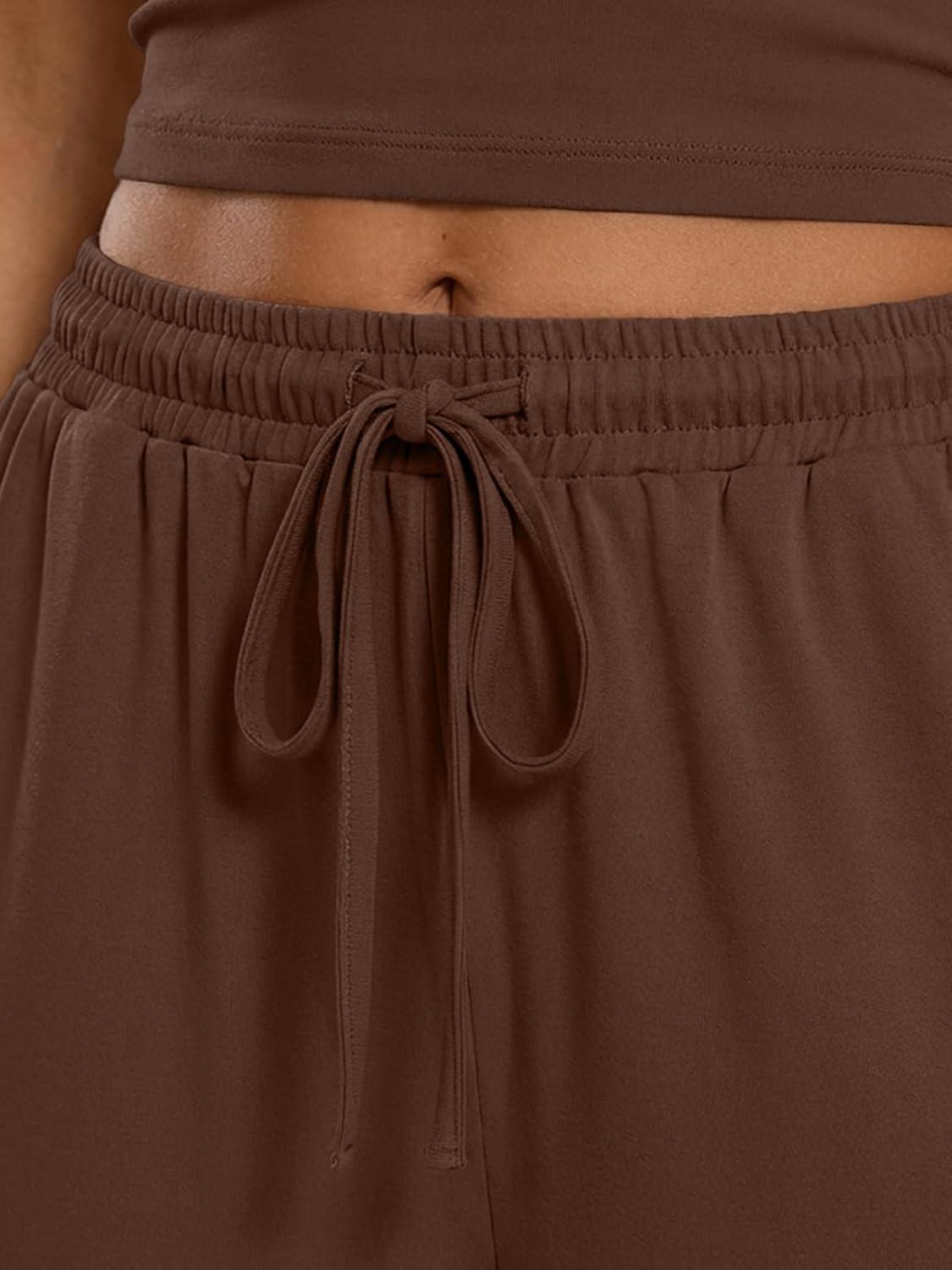 Trendy Queen Women's 2 Piece Lounge Set Spring Outfits - Camisole Top & Wide Leg Pants(Coffee)