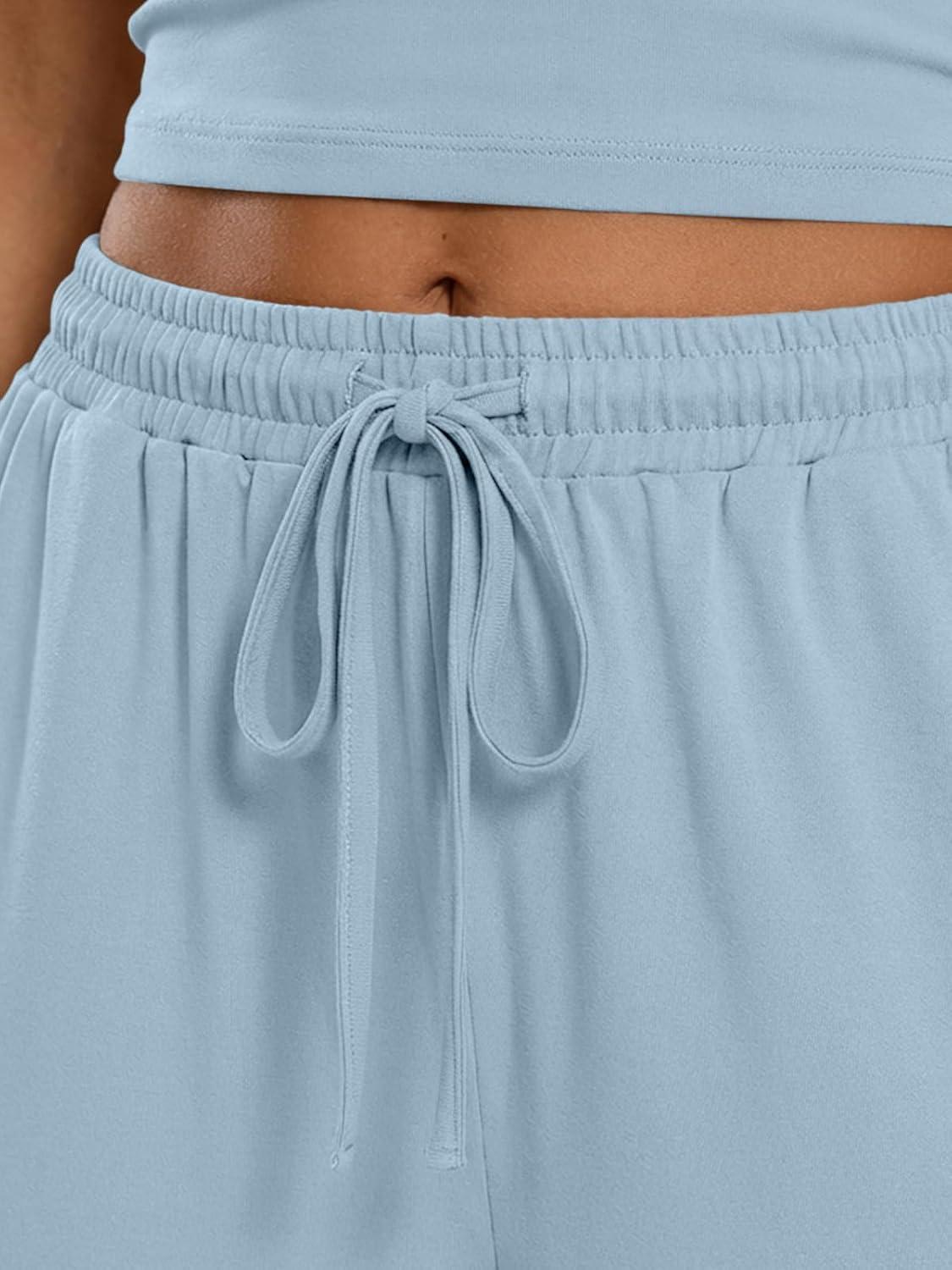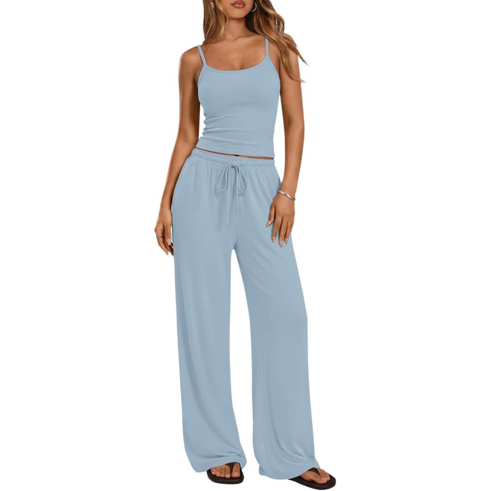 Trendy Queen Women’s 2 Piece Lounge Set Spring Outfits – Camisole Top & Wide Leg Pants(Light Blue)