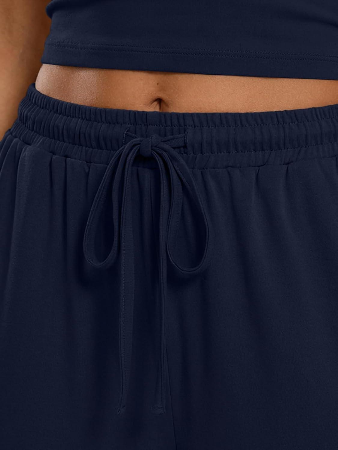 Trendy Queen Women's 2 Piece Lounge Set Spring Outfits - Camisole Top & Wide Leg Pants(Navy)