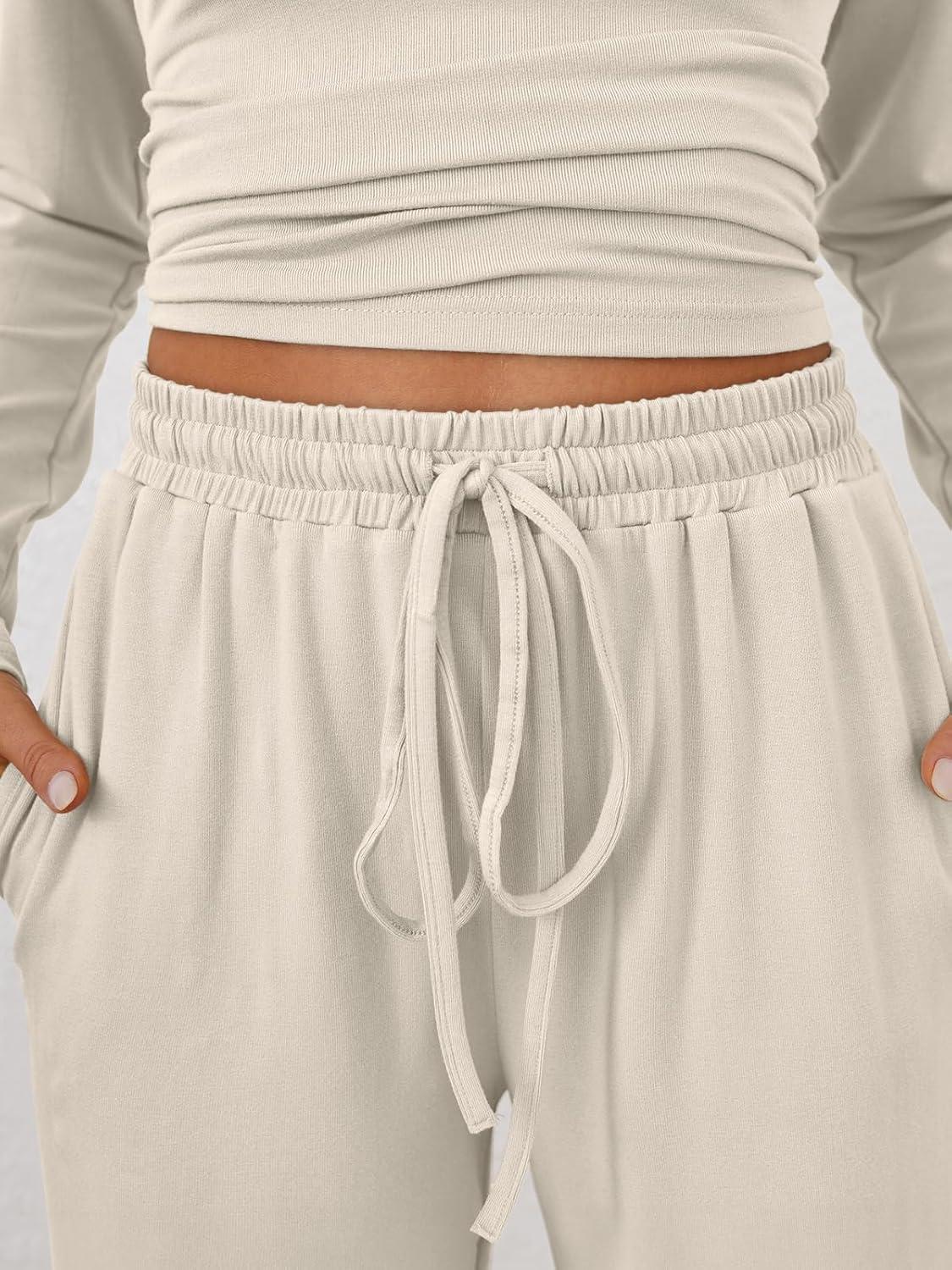 Trendy Queen Women’s 2 Piece Matching Lounge Set Long Sleeve Slightly Crop Top Wide Leg Pants Casual Sweatsuit(Pink)
