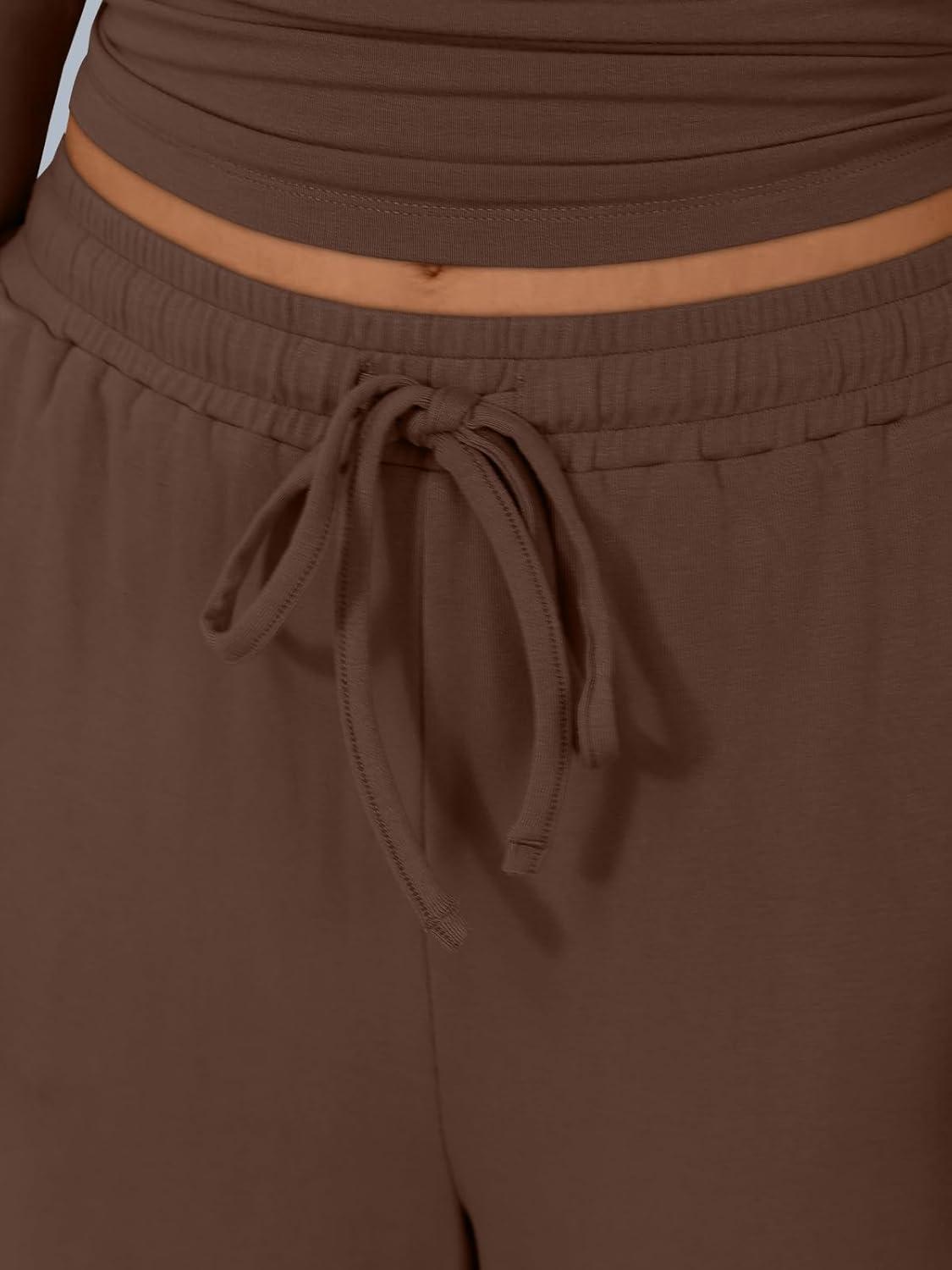 imageTrendy Queen Womens 2 Piece Matching Lounge Sets Long Sleeve Henley Neck Slightly Crop Top Wide Leg Pants Casual Sweat SuitCocoa