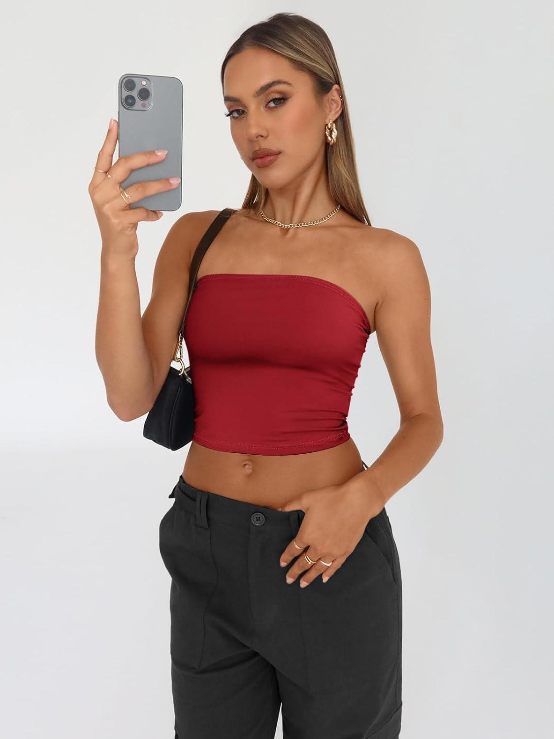 Be the first to review “Trendy Queen Womens 3 Pack Tube Tops Crop Going Out Strapless Basic Backless Bandeau Bra Summer Outfits 2026(Black white red)”